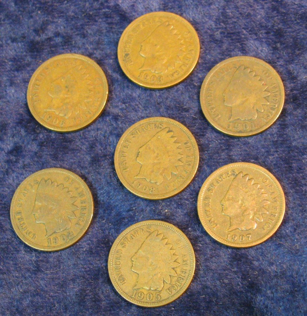 1271. 1901, 02, 03, 04, 05, 06 & 07 Indian Head Cents. G.
