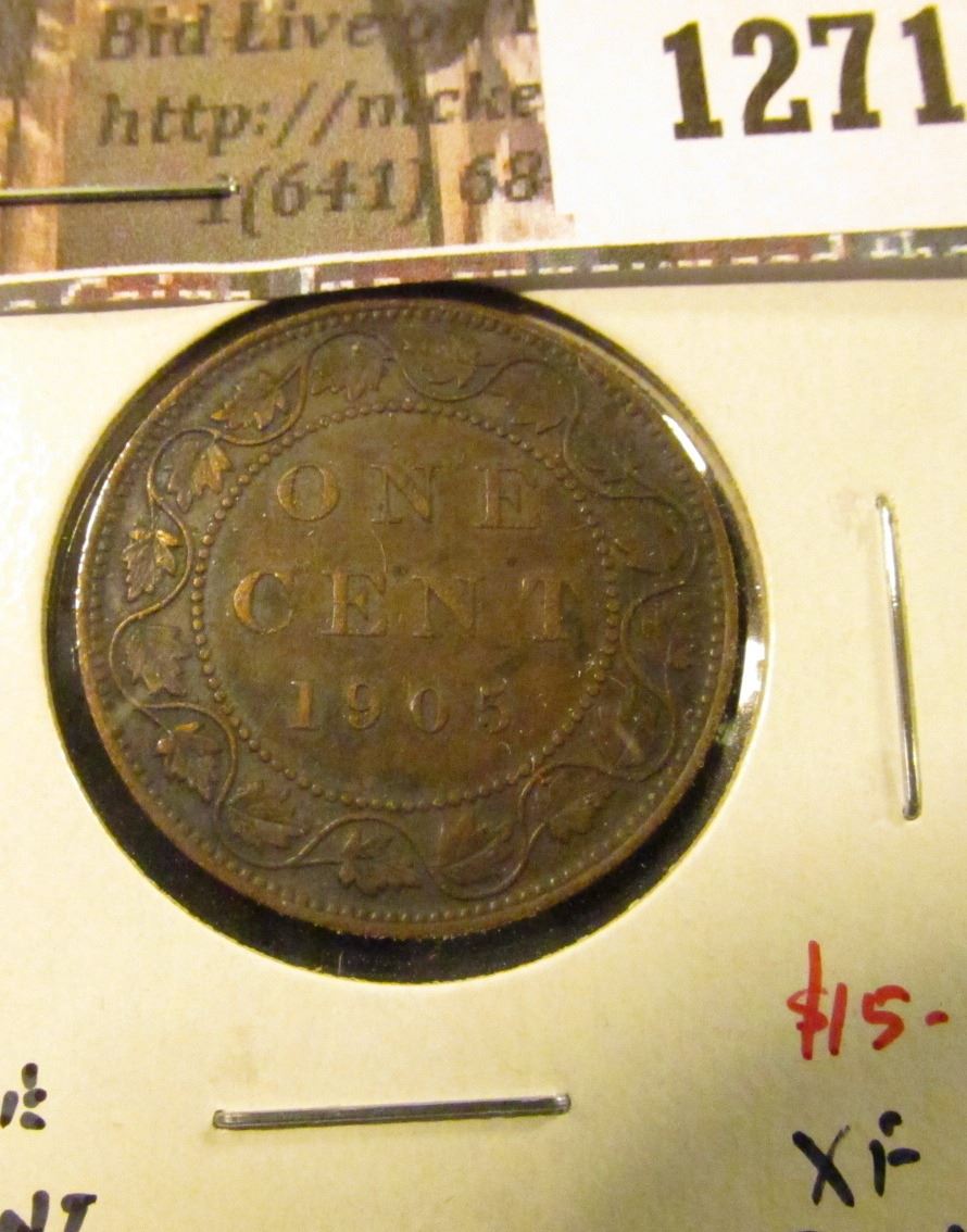 1271 . 1905 Canada One Cent, XF toned, value $15