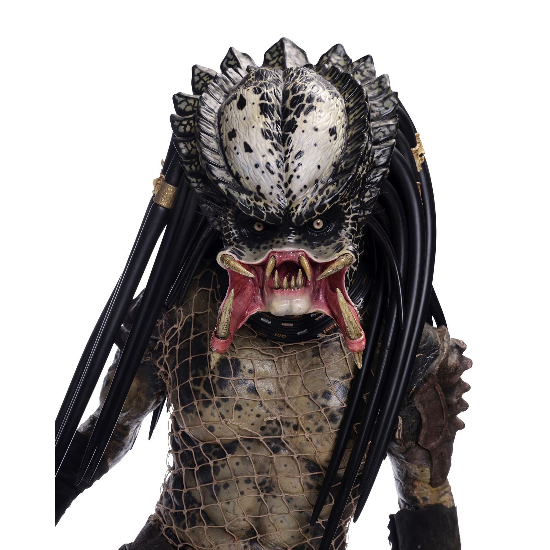 PREDATOR 2 (1990) - Hippie Predator Costume with Replica Head - A Hippie Predator costume with a replica head from Stephen Hopkins' Predator 2. After the city hunter (Kevin Peter Hall) died, a group of Yautja Predators including the one known as Hippie came to take away its body.
