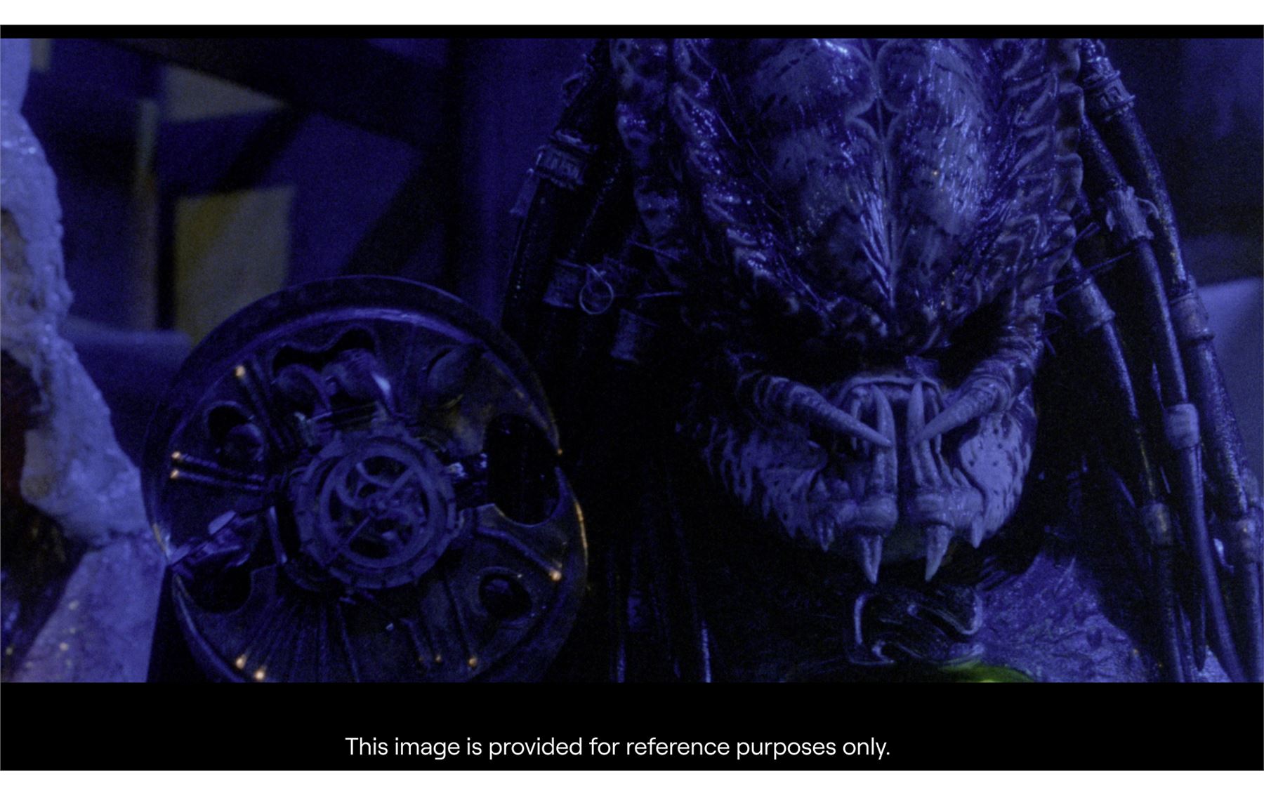 PREDATOR 2 (1990) - City Hunter's (Kevin Peter Hall) Stunt Closed Predator Smart Disc - City Hunter's (Kevin Peter Hall) stunt closed Predator Smart Disc from Stephen Hopkins' Predator 2. The Predator known as the City Hunter dispatched CIA agent Peter Keyes (Gary Busey) with boomeranging Yautja Smart Disc during the slaughterhouse battle.