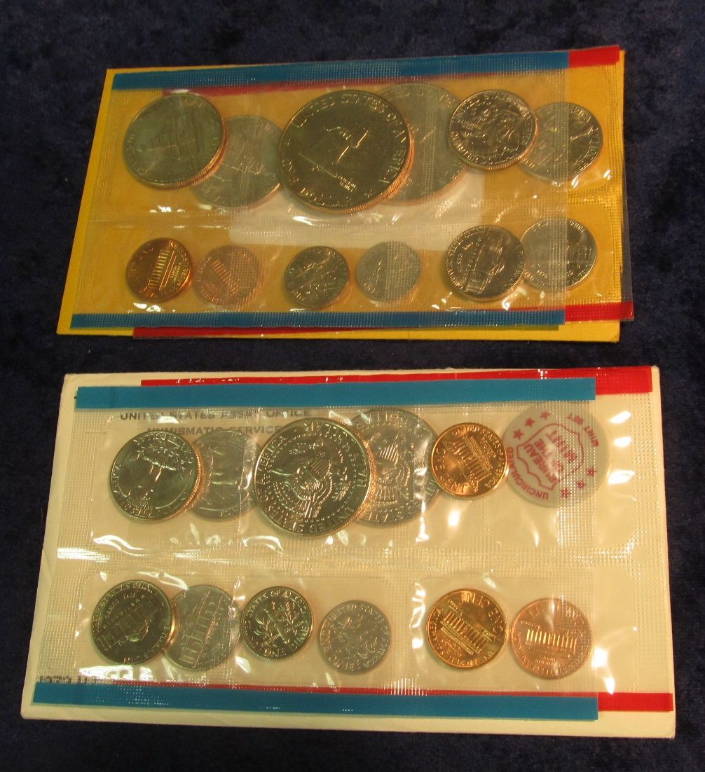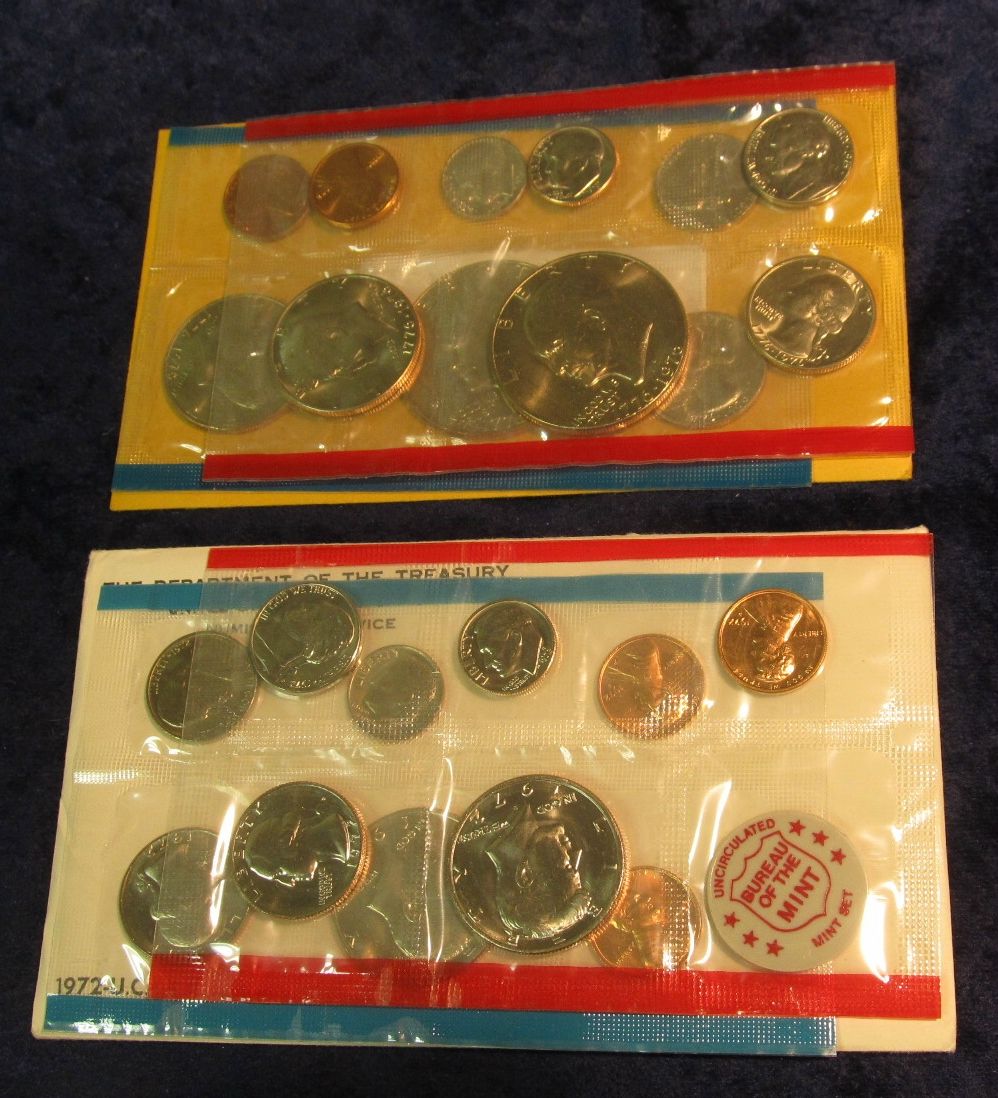 1274. 1972 & 75 U.S. Mint sets in original cellophane as issued.