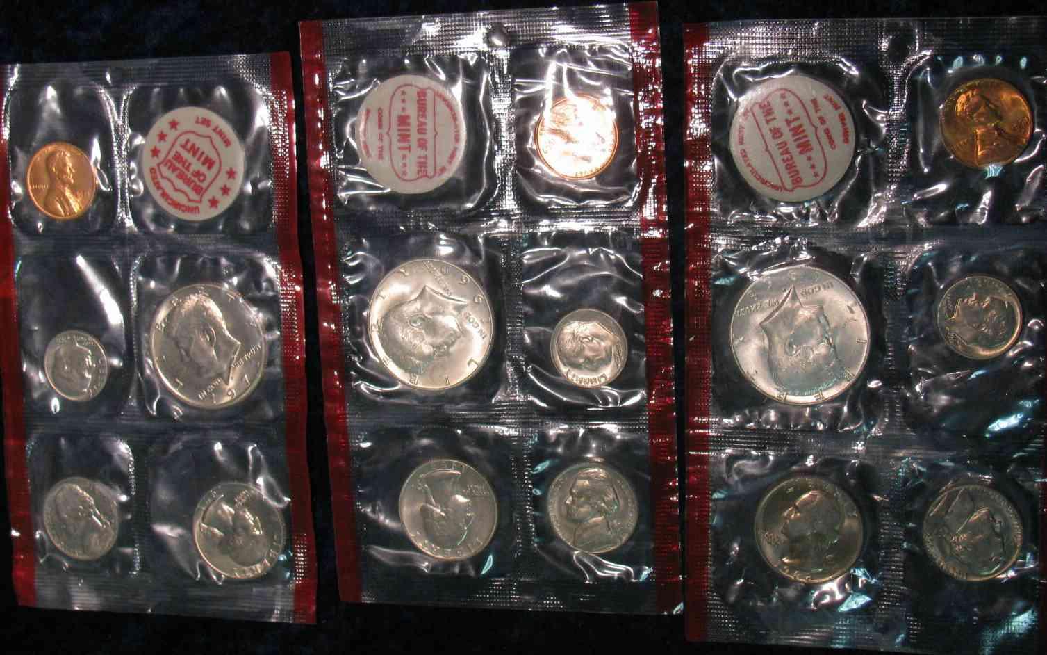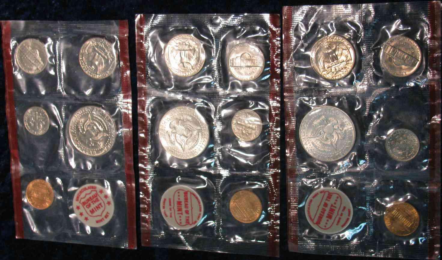 1274. (3) Partial US Mint Sets. 1968D, 69D & 71D. In Original Celophane.