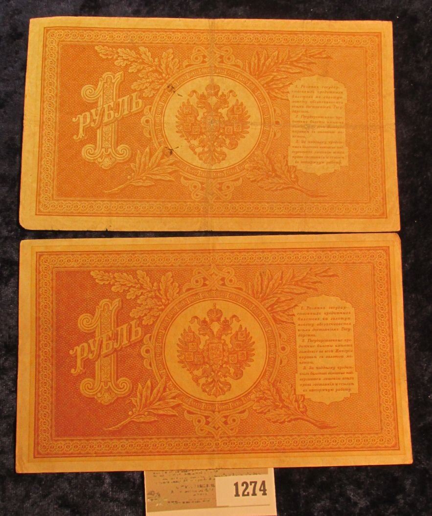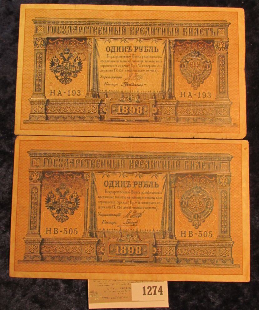 1274 _ Pair of 1898 Russian One Rouble Banknotes, Pick # 15, VF-EF.