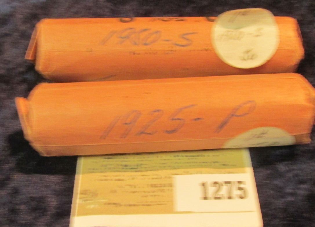 1275 _ 1925 P & 50 S Solid Date Rolls of Lincoln Cents. Circulated. (2 rolls).