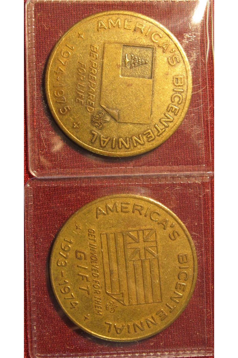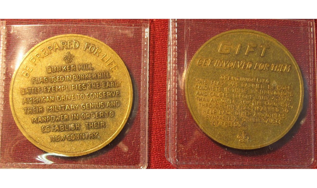 1276. 2 Bicentennial medals issued for Boy Scouts featuring flags from the Revolutionary War