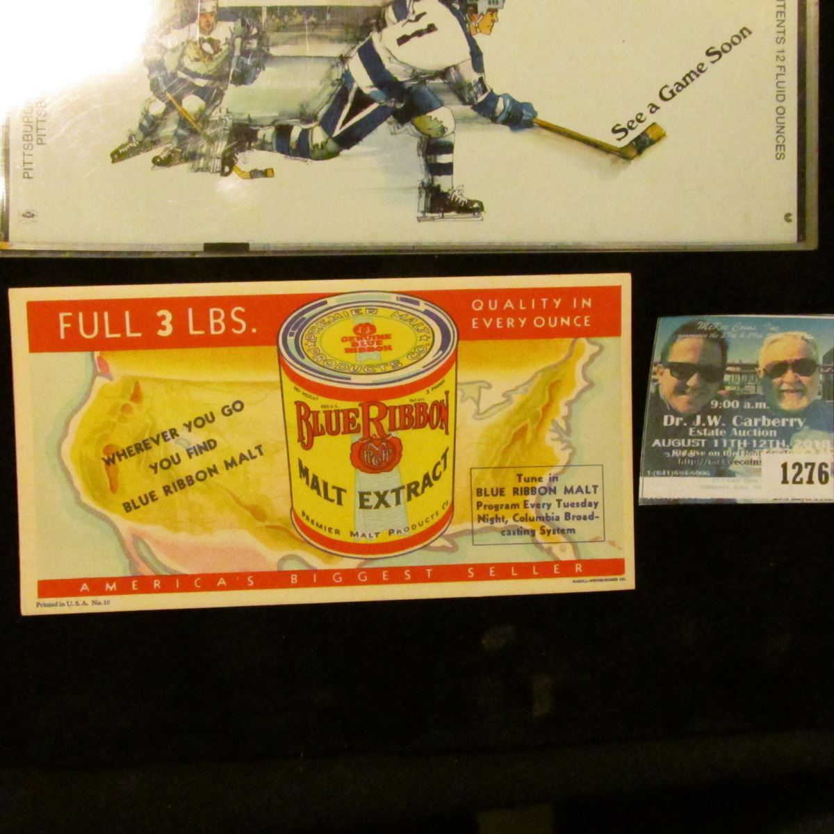 Iron City Beer Aluminum Sheet to be Formed into a can and Blue Ribbon Malt Extract Ink Blotter.