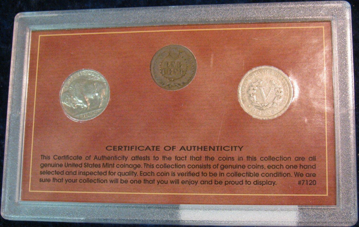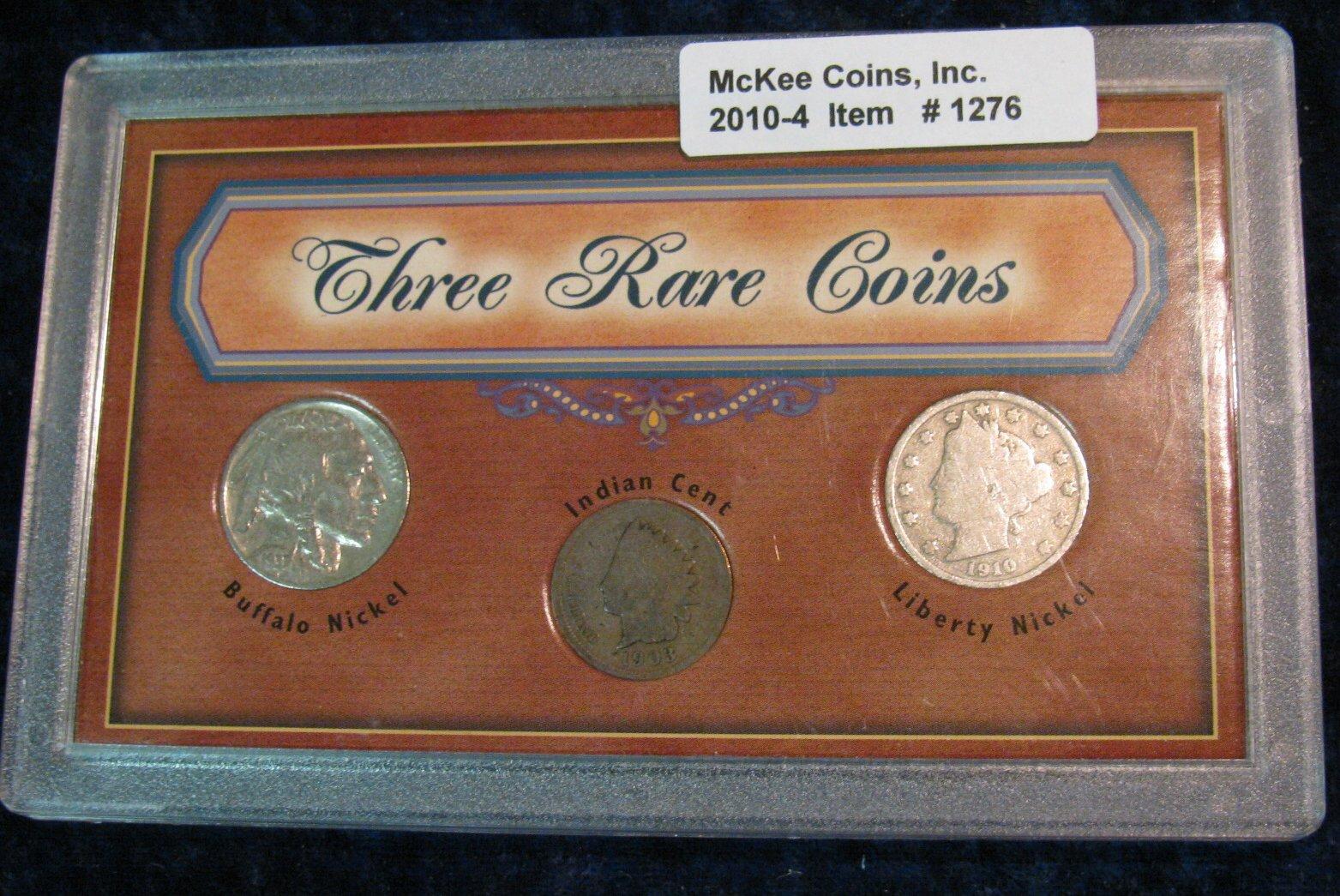 1276. Three Rare Coin Set. 1903 Indian Cent, 1910 Liberty Nickel & 1937 Buffalo Nickel.
