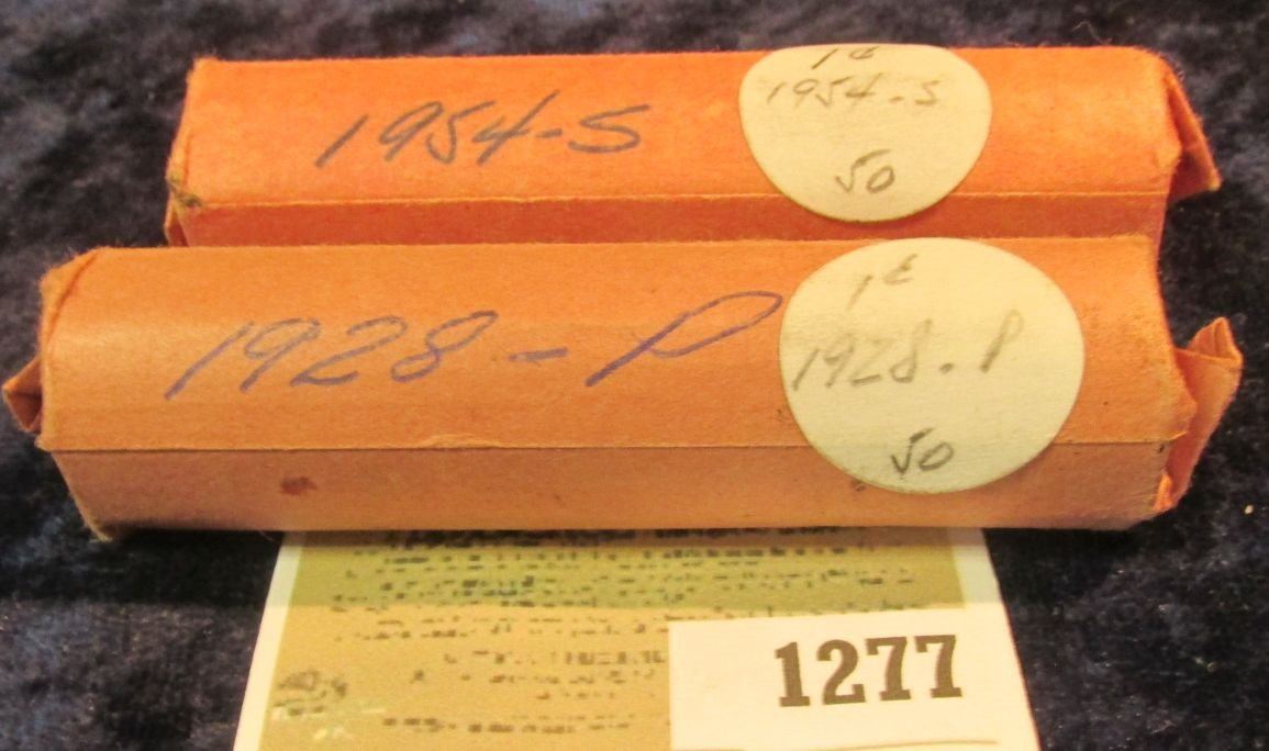 1277 _ 1928 P & 54 S Solid Date Rolls of Lincoln Cents. Circulated. (2 rolls).