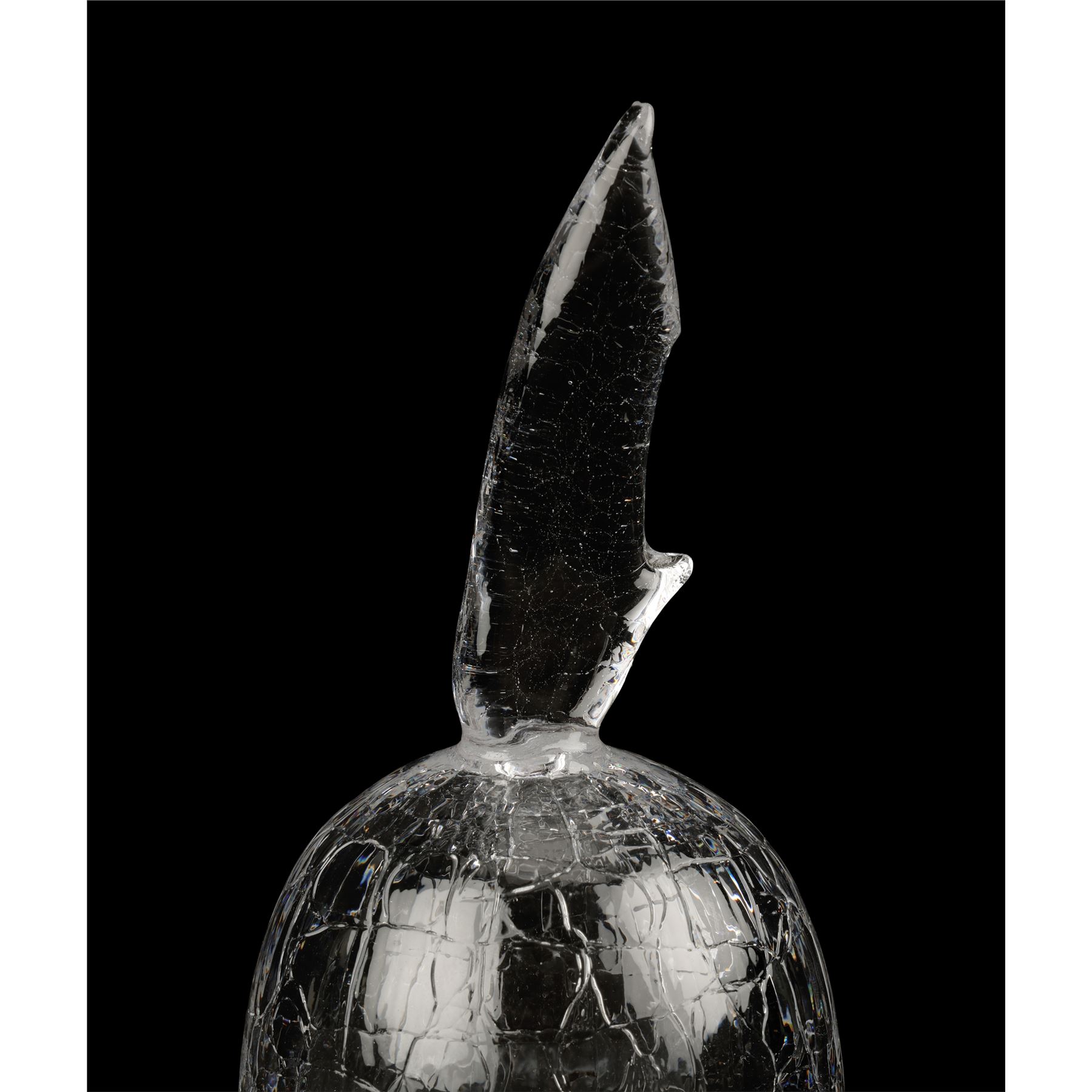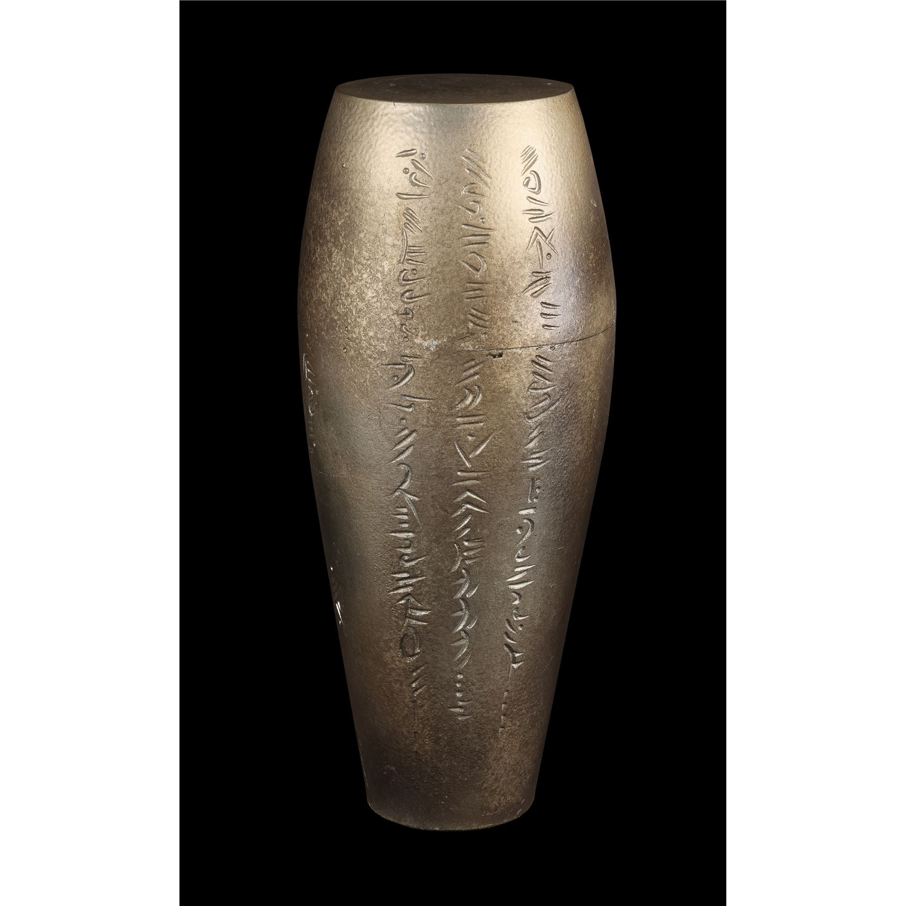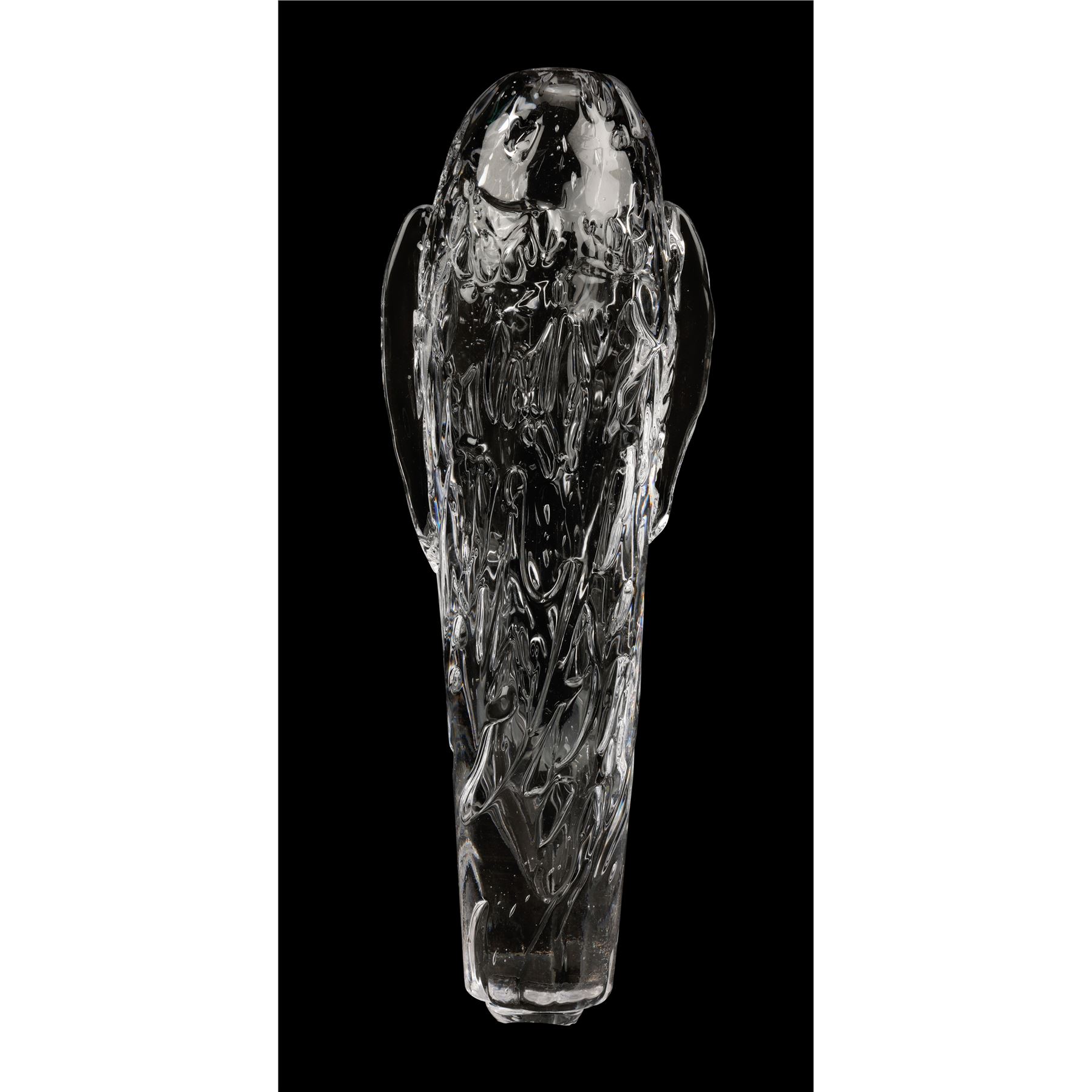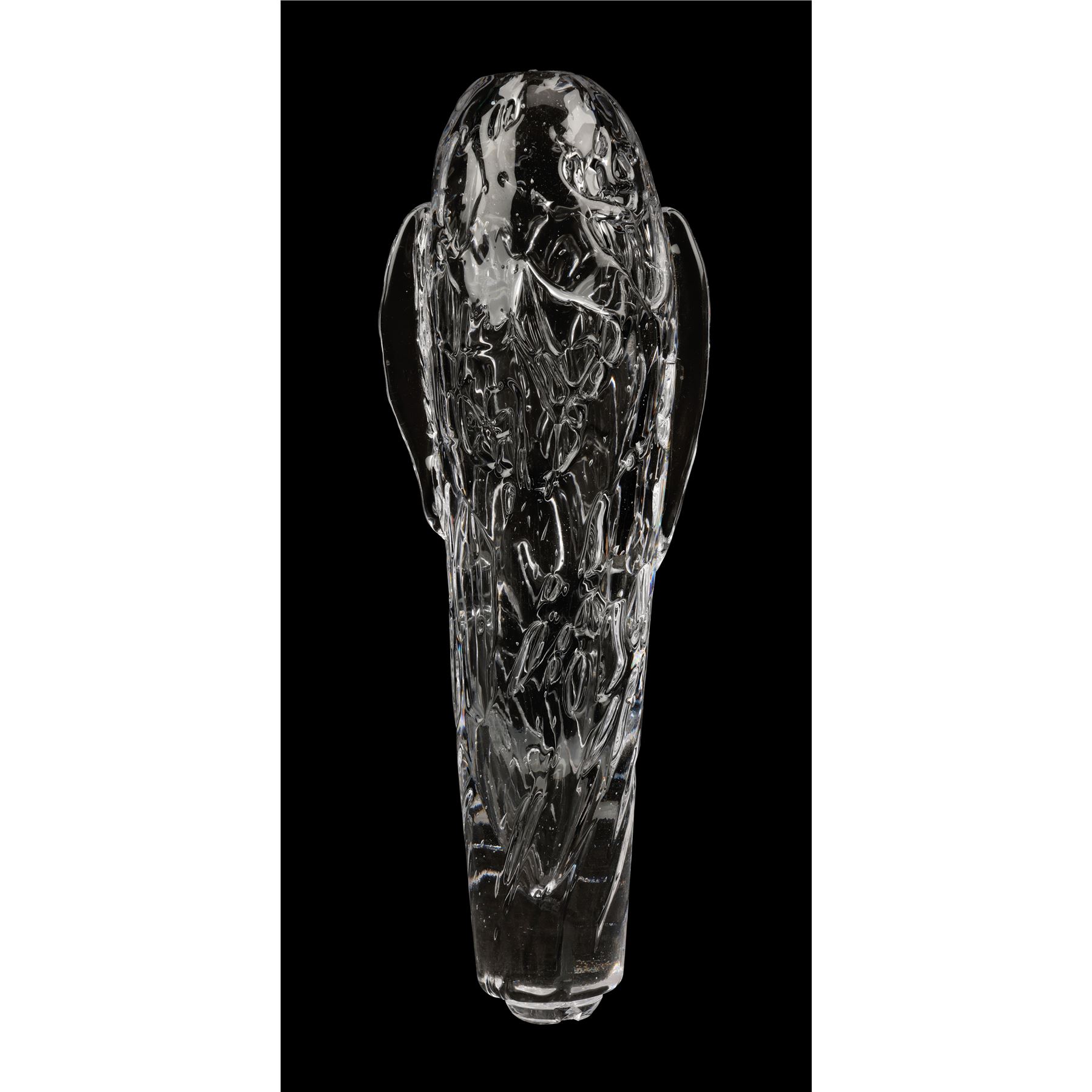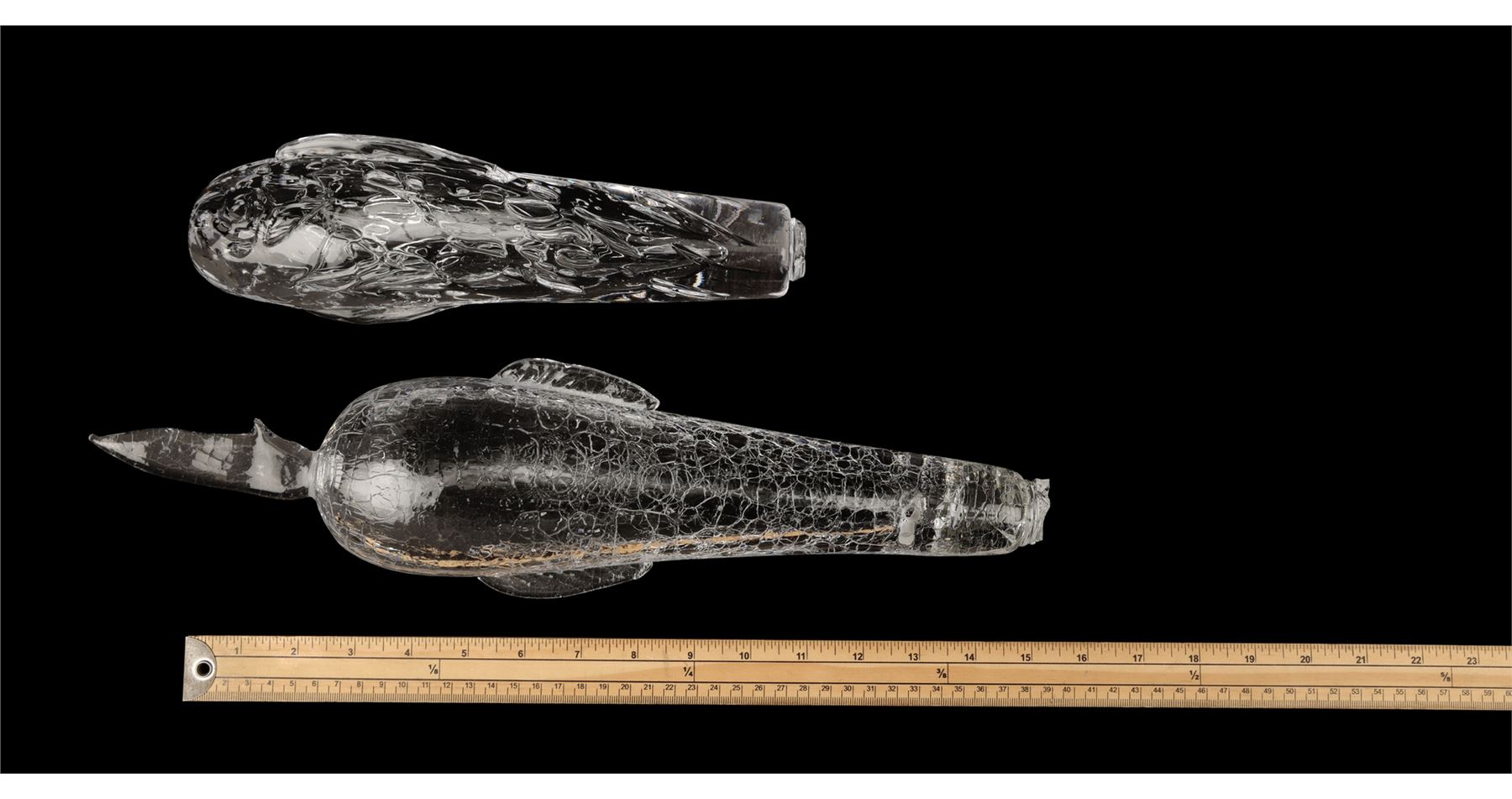 The two prototype vials were created as part of the process of developing the final onscreen aesthetic. They are made from transparent glass and feature detailed engravings to appear extra-terrestrial. Each ampule exhibits intentional distressing. Dimensions (ampule): 17.50" x 6.50" x 6.50" (44.25 cm x 16.50 cm x 16.50)