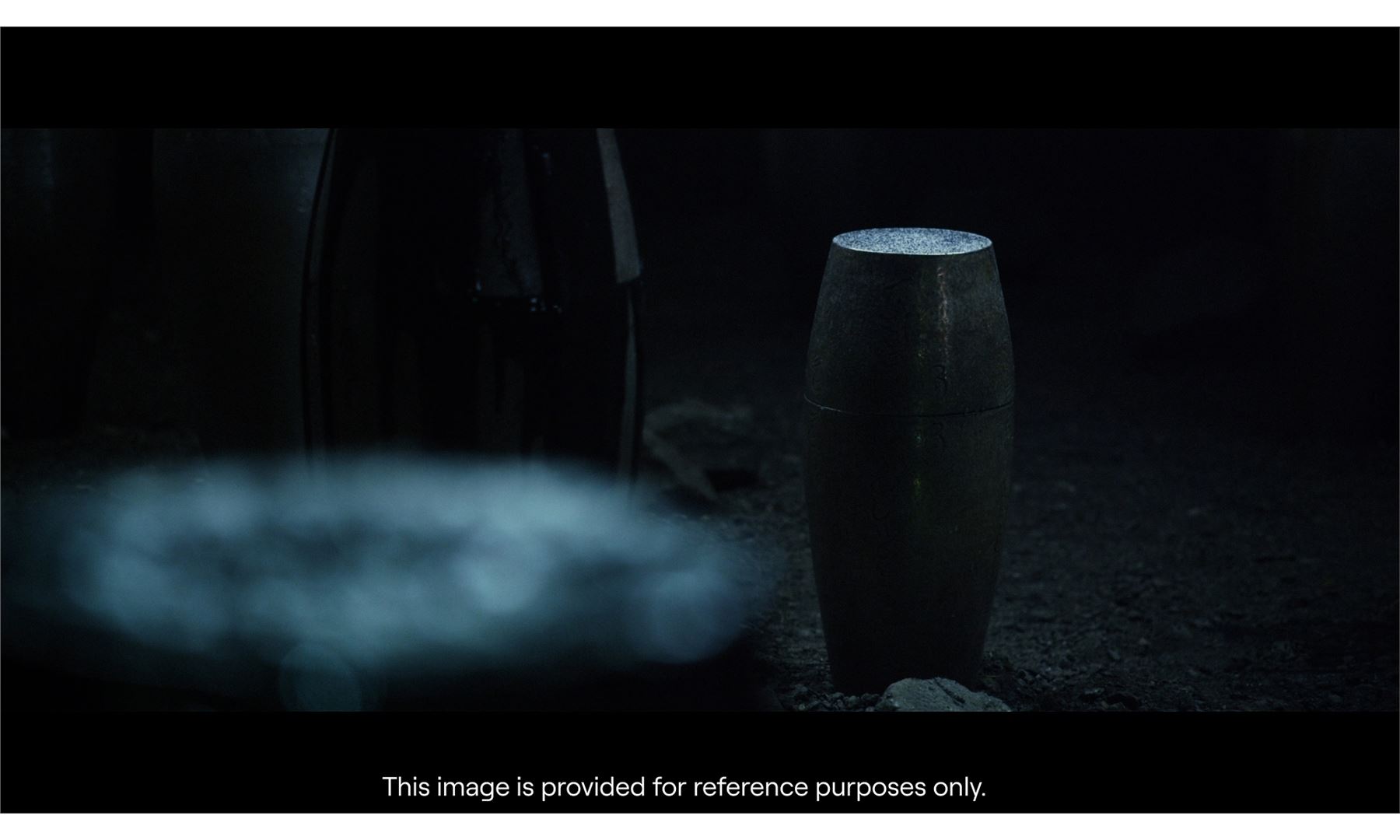 Raku pottery specialist Rob Sollis crafted the pivotal resin-based ampules, inspired by delicate Roman glass. Alien text is etched vertically into the curving body, which has its own bespoke, ethereal metallic paint effect.