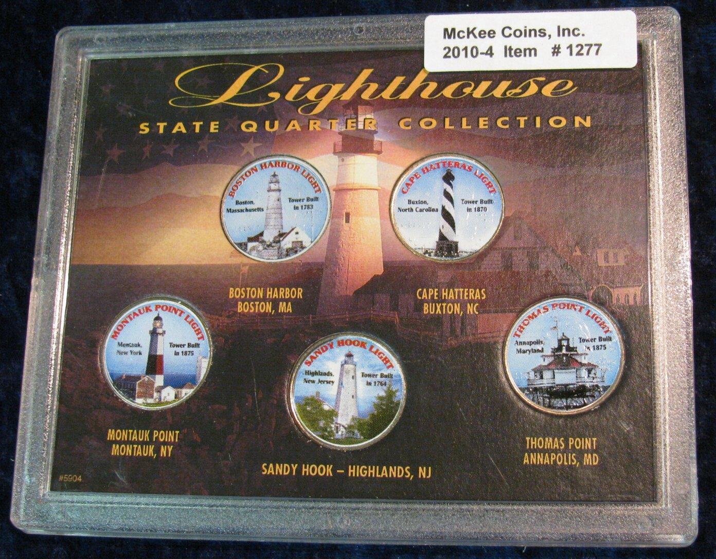 1277. Lighthouse State Quarter Collection, 5-Colorized Quarters with Pictures of Lighthouses.