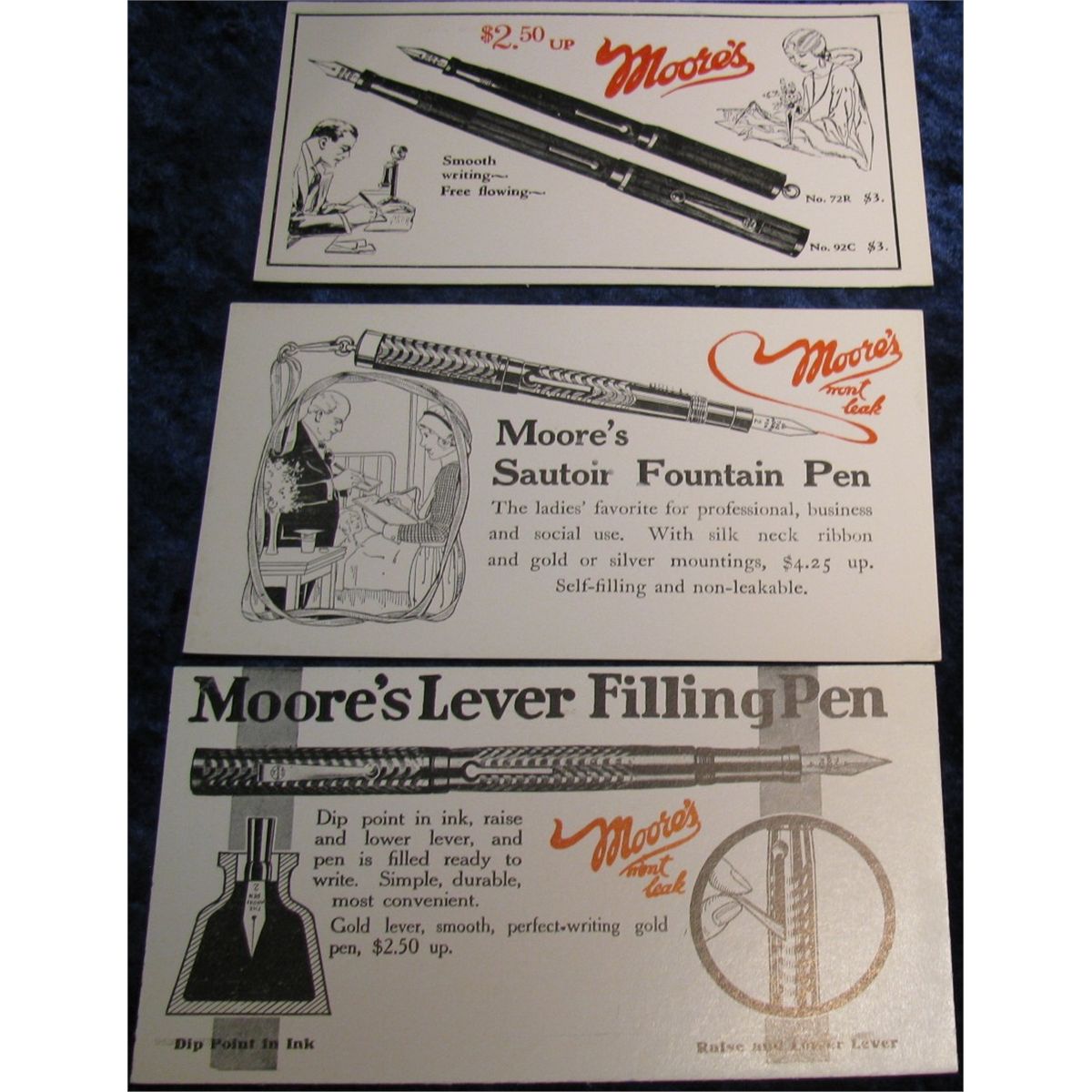 1278. 3-Different "Moore's" Pen Blotters. Circa. 1940.