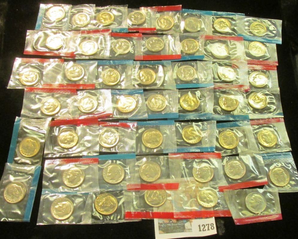 (50) 1965-78 U.S Mint Single Roosevelt Dimes in original U.S. Mint Cellophane as cut from Mint Sets.