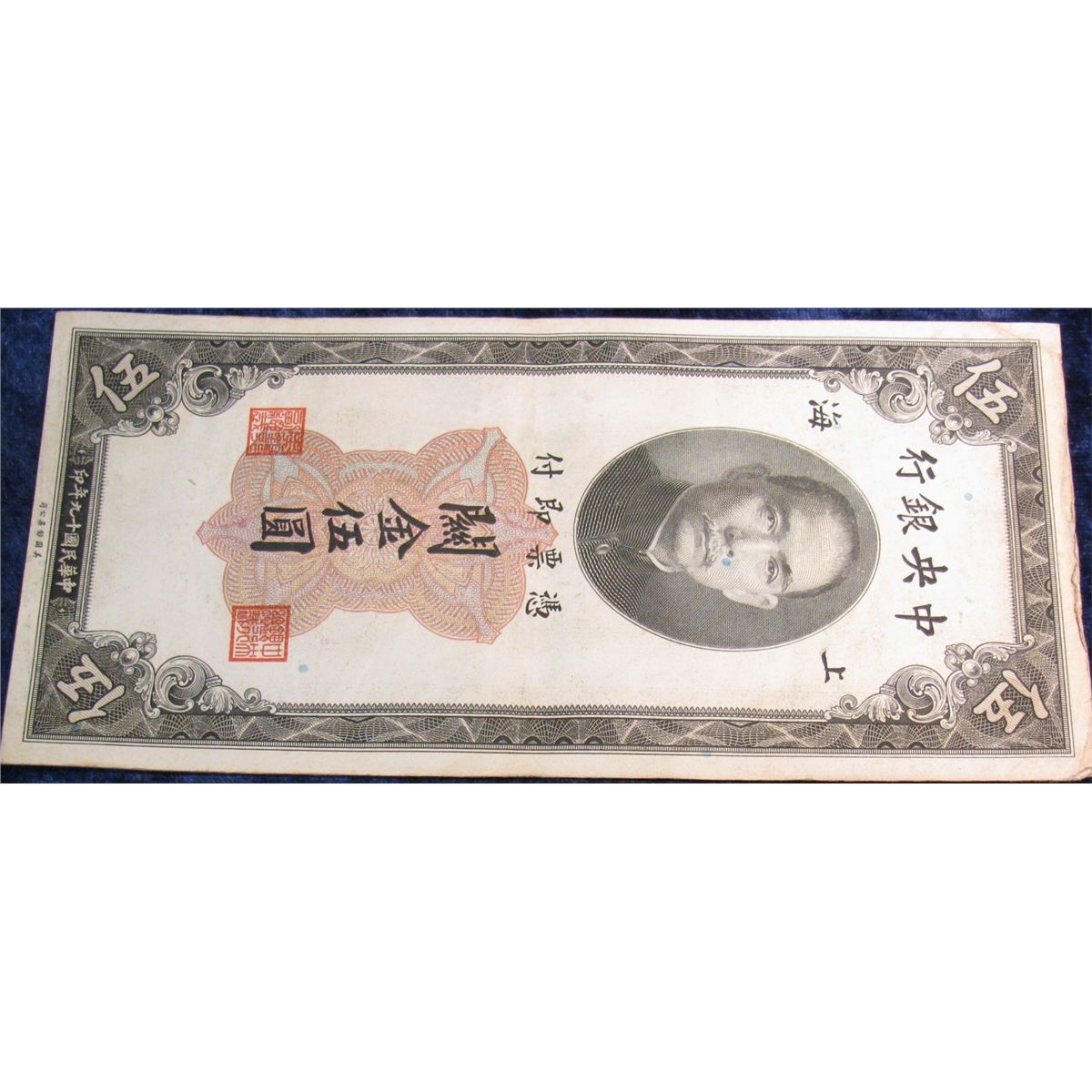1279. Series 1930 Shanghai, China 5 Customs Gold Units.