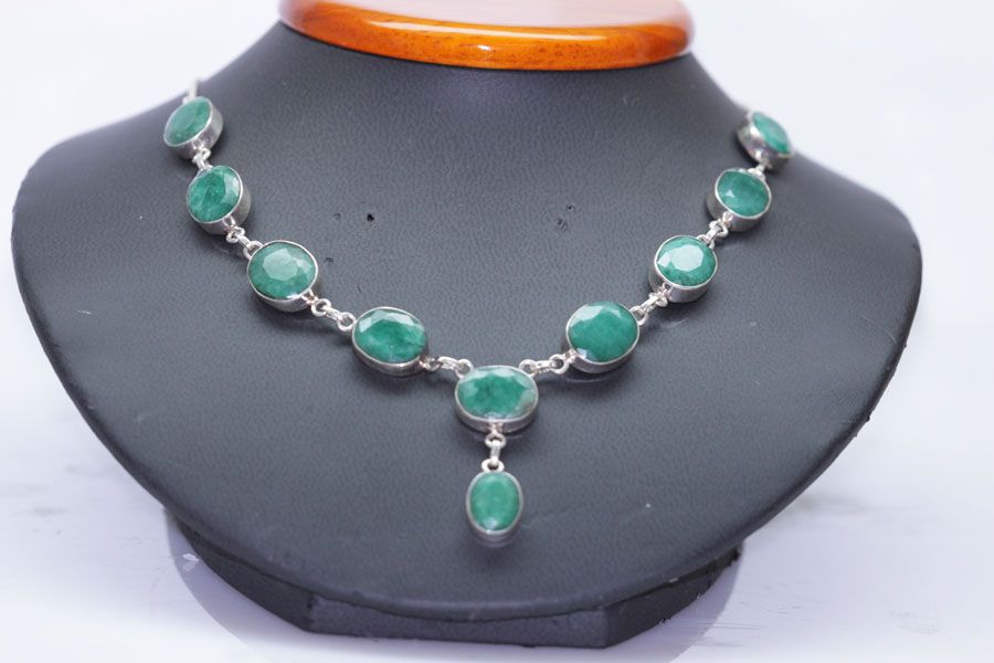 128.84 CTW EMERALD NECKLACE .925 STERLING SILVER **|**|** 128.84 CTW EMERALD NECKLACE .925 STERLING SILVER ; MSRP: $1750
