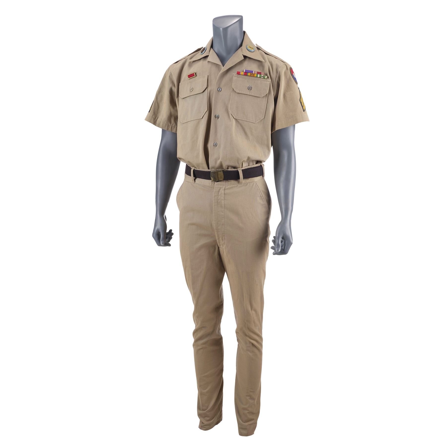 FORREST GUMP (1994) - Forrest Gump's (Tom Hanks) Military Dress Uniform - Forrest Gump's (Tom Hanks) military dress uniform from Robert Zemeckis' Forrest Gump. Forrest wore his military dress uniform as he was discharged from the army while playing ping pong and as he returned home to his mother Mrs. Gump (Sally Field) in Greenbow, Alabama.