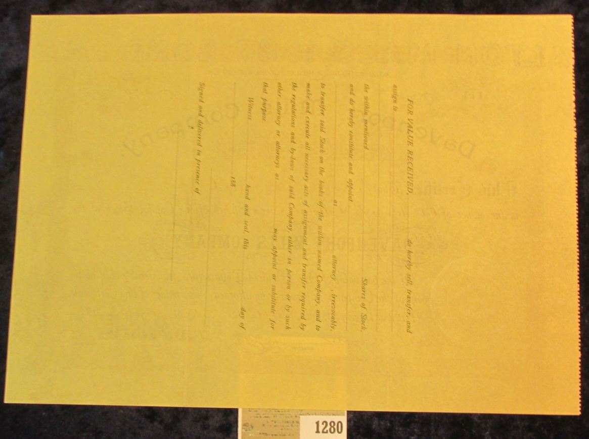 1280 _ No. 114 "Davenport Mills Company" dated 10th of January 1890, excellent condition and ready for mounting.