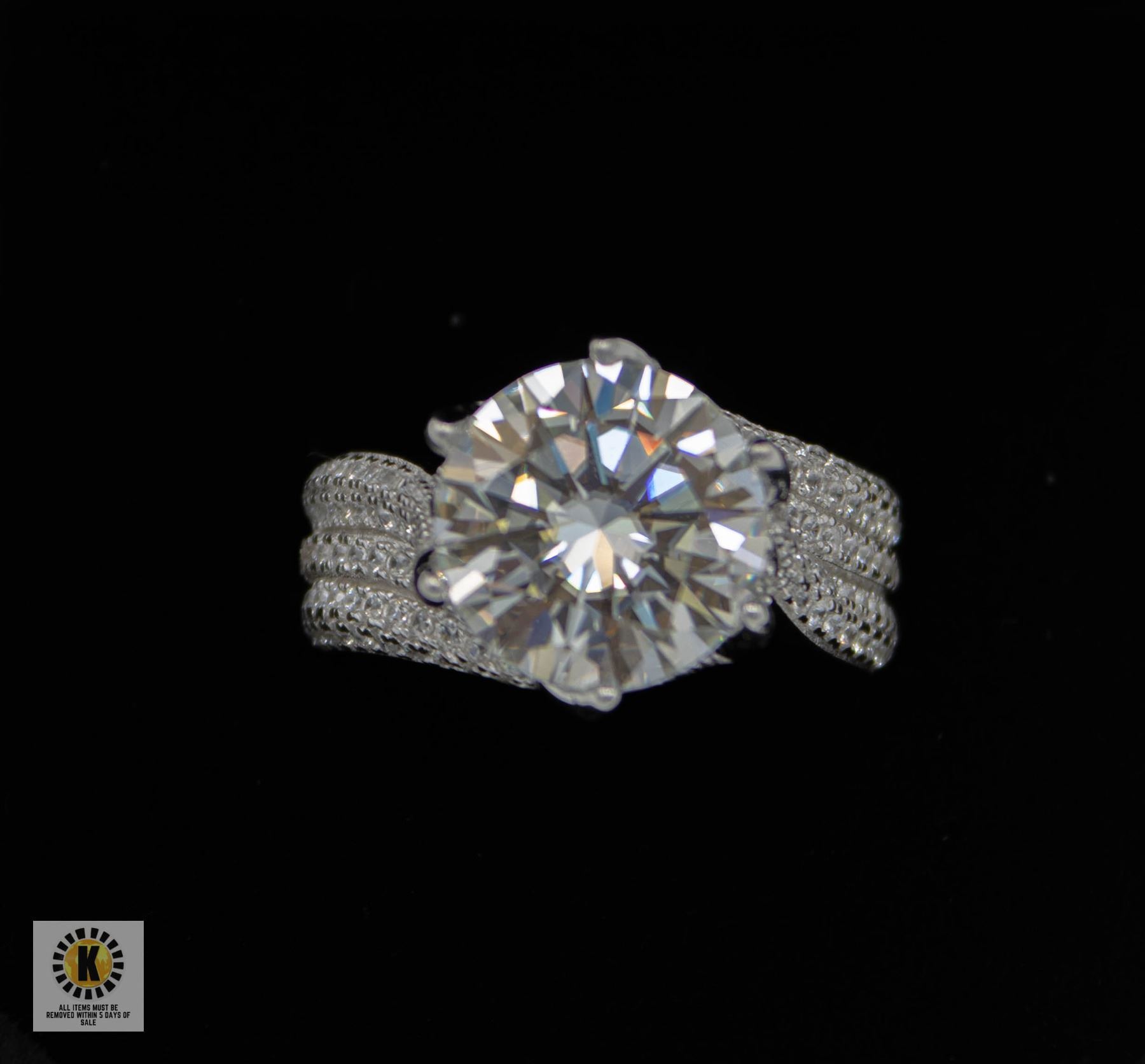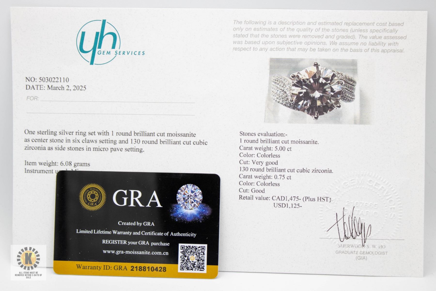MOISSANITE STONE VVS D COLOR SET WITH 130 ROUND BRILLIANT CUT CZS SET IN 925 SILVER RING SIZE 7 RETAIL VALUE $1,475.00