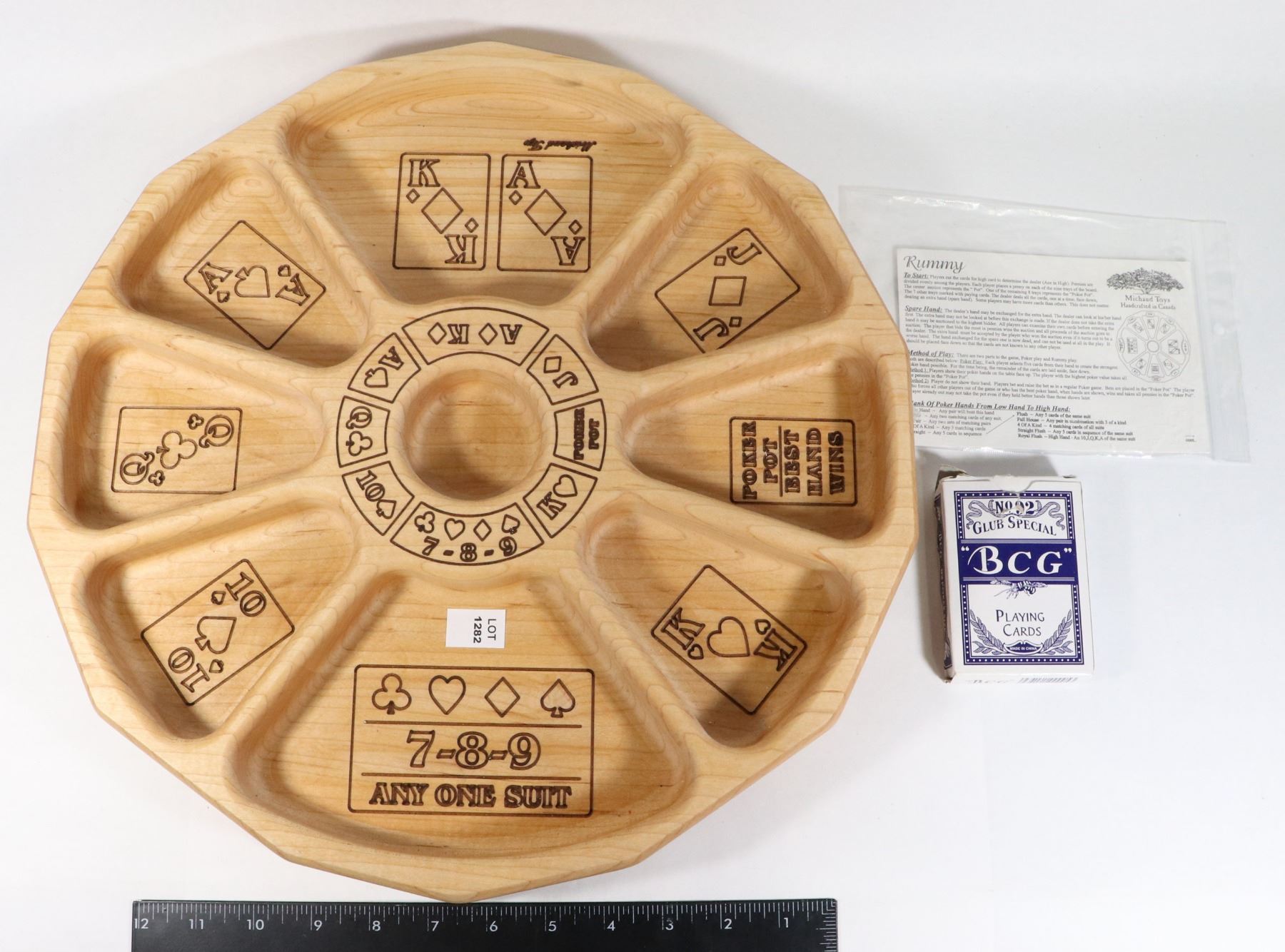 WOOD MADE IN CANADA SPINNING DESIGN INCLUDES INSTRUCTIONS FOR RUMMY AND CARD PACK