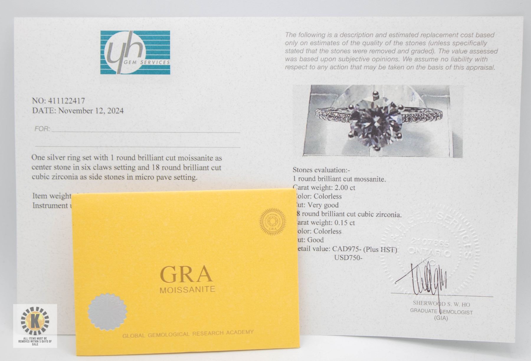 MOISSANITE STONE VVS D COLOR WITH 18 ROUND BRILLIANT CUT CUBIC ZIRCONIA SET IN THE SHANK SET IN 925 SILVER RING SIZE 7 RETAIL VALUE $975.00