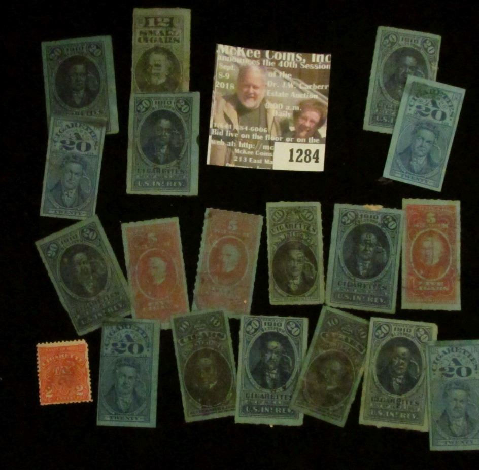 1284 _ Pack of (19) Cigarette Tax Stamps, many over 100 years old.