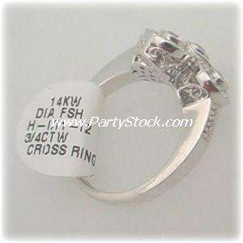 [137266926] Gorgeous Genuine 0.75 CTW* Diamond Ring (WE WILL SIZE THIS RING TO YOUR REQUESTED SIZE, AT NO EXTRA CHARGE!) set in 14 Karat White Gold boasts a stunning Cross made out of Diamonds. This large ring would be a perfect engagement/wedding ring. We will size this ring for you at no extra charge! <p> We bought a "lot" of Close Out Items from a Premier Retail Chain that went out of business in California recently. We're able to pass our HUGE savings on to YOU! Please note, our quantities are very limited and we will not be able to offer this item again, once it is sold out. <p> Retail tags still attached, and read $1285.00 H-I Stone I1-I2 3/4 CTW 14KWG <p> <p> * CTW = Carats Total Weight