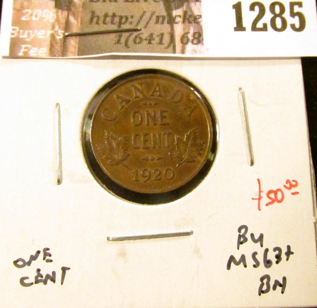1285 . 1920 Canada (Small) One Cent, BU MS63+BN, value $50+