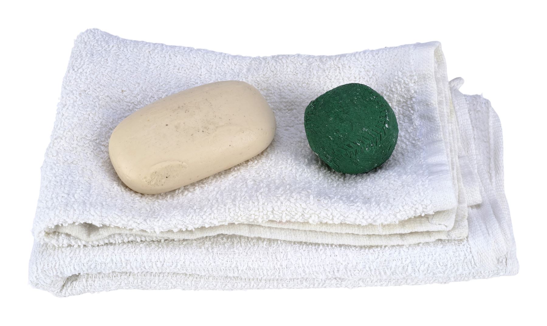 RED DRAGON (2002) - Hannibal Lecter's (Anthony Hopkins) Prison Towels, Soap, and Ball - Hannibal Lecter's (Anthony Hopkins) prison towels, soap, and ball from Brett Ratner's Red Dragon. Lecter kept his towels and soap near the sink in his cell and his ball on the desk as he wrote to Will Graham (Edward Norton) following Will's fight against Francis Dolarhyde (Ralph Fiennes), aka the Tooth Fairy and the Red Dragon.