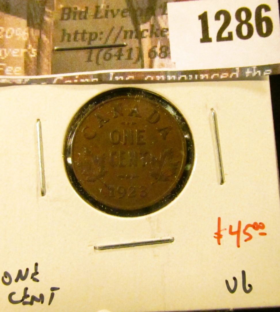 1286 . 1923 Canada One Cent, VG, KEY DATE, value $45