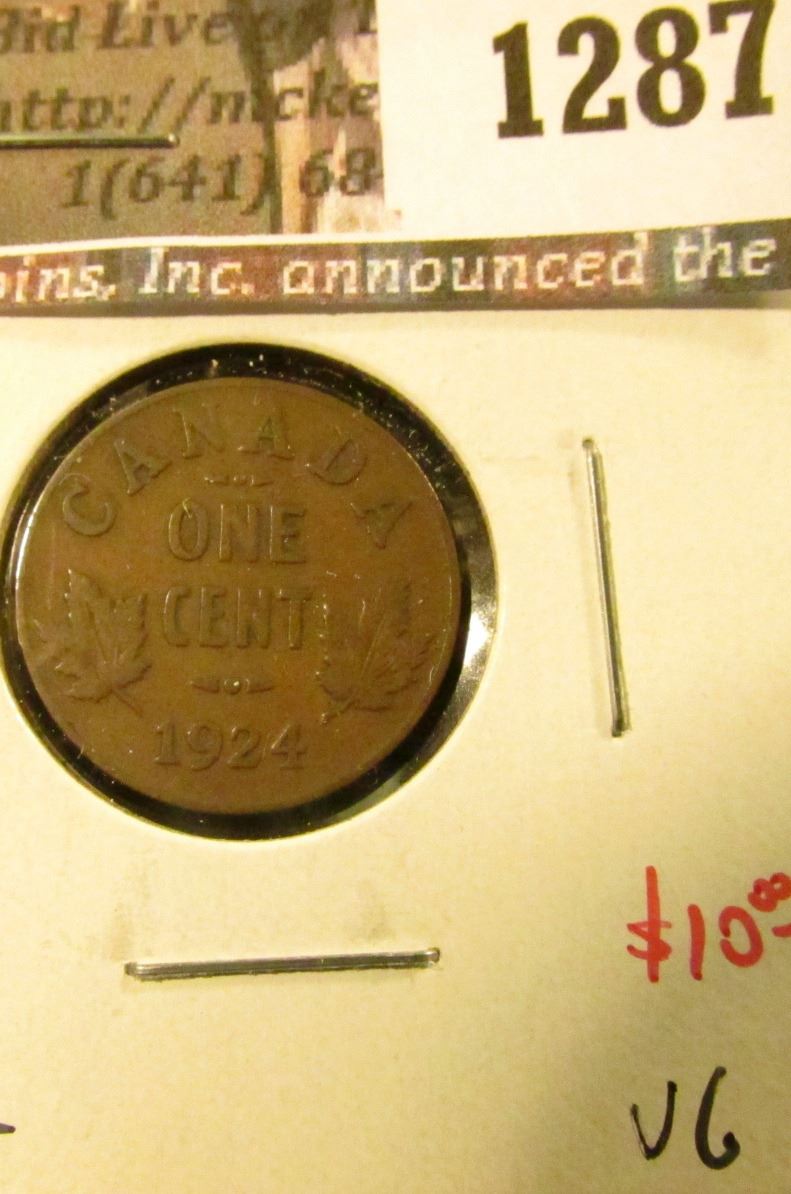1287 . 1924 Canada One Cent, VG, semi-key date, value $10
