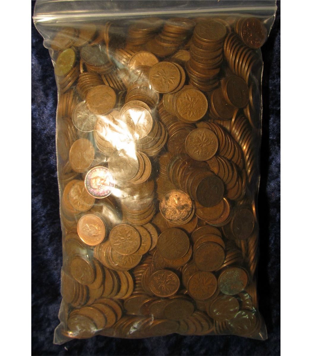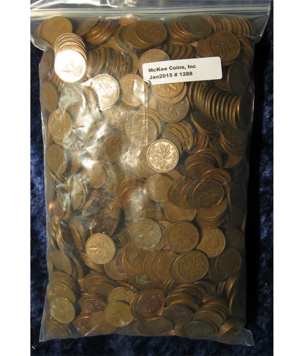 1288.(1300) Canadian Pennies, George V through Elizabeth II, good mix of dates, more bronze than plated examples in mix