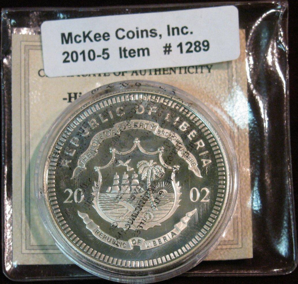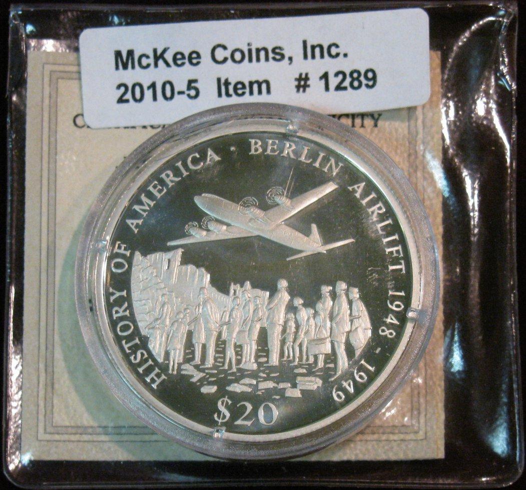 1289. 2002 Liberia $20 Sterling Silver Proof Commemorative of 1948-49 Berlin Airlift. Weighs 20 grams. Limited mintage of 20,000 pieces.