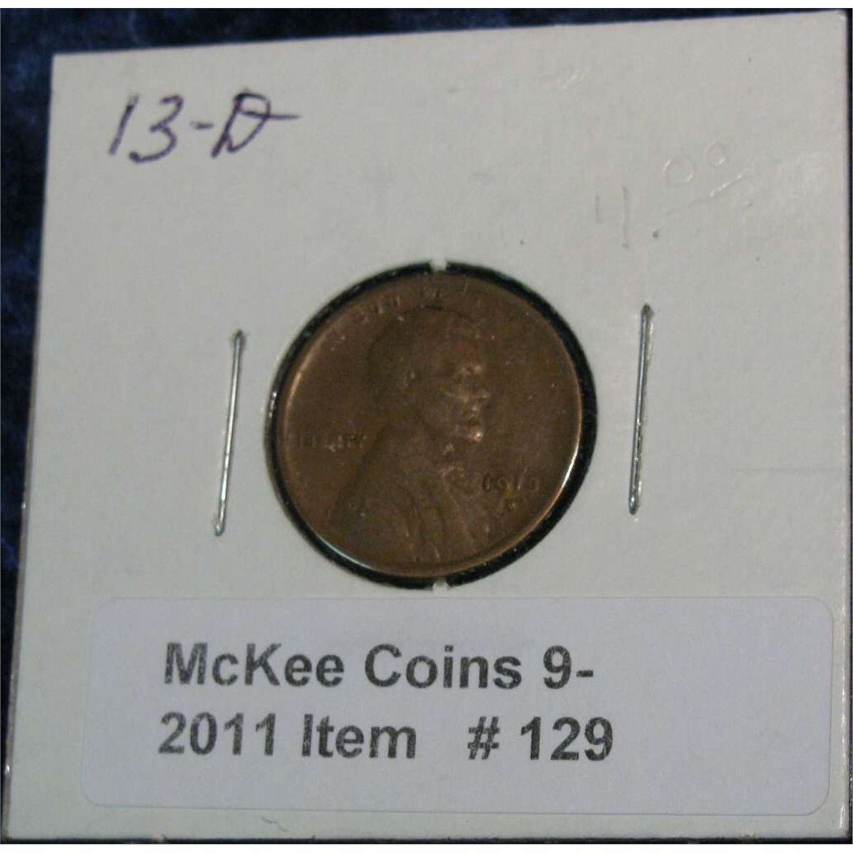 129. 1913 D Lincoln Cent. VG-8.
