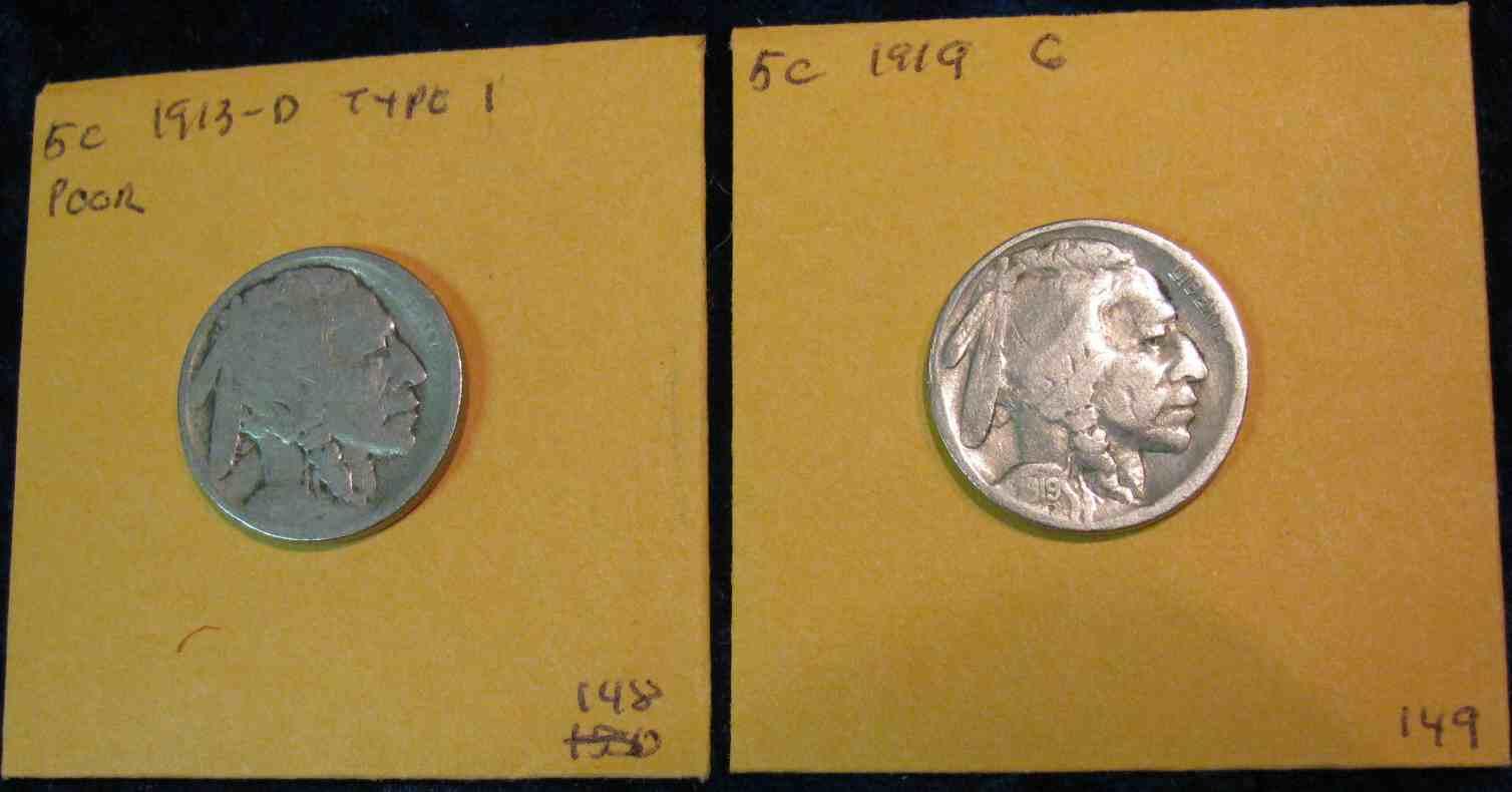 129. 1913D Type 1 AG & 1919P G Buffalo Nickels.