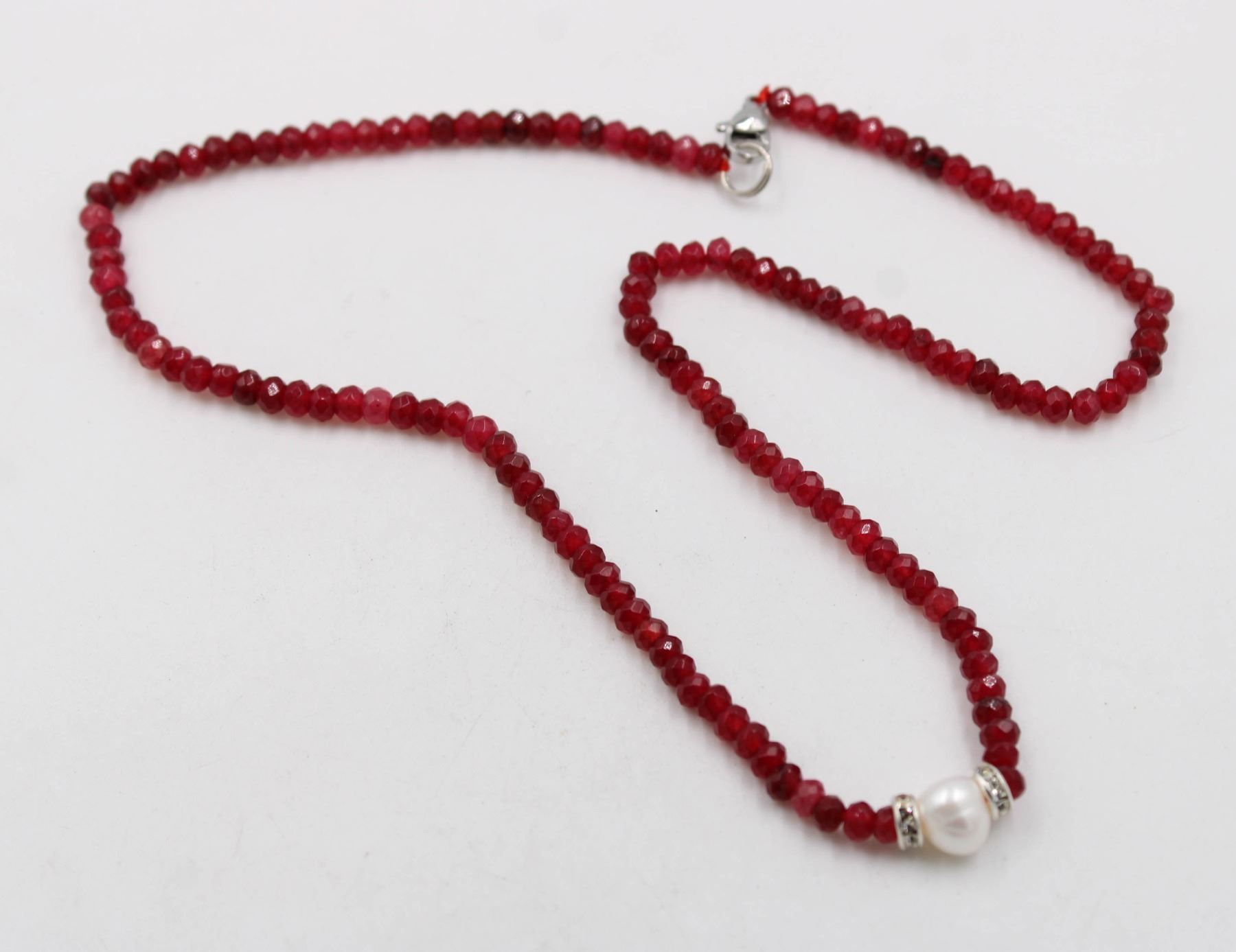 #129-NATURAL RED JADE ,PEARL NECKLACE 18"/4-8MM