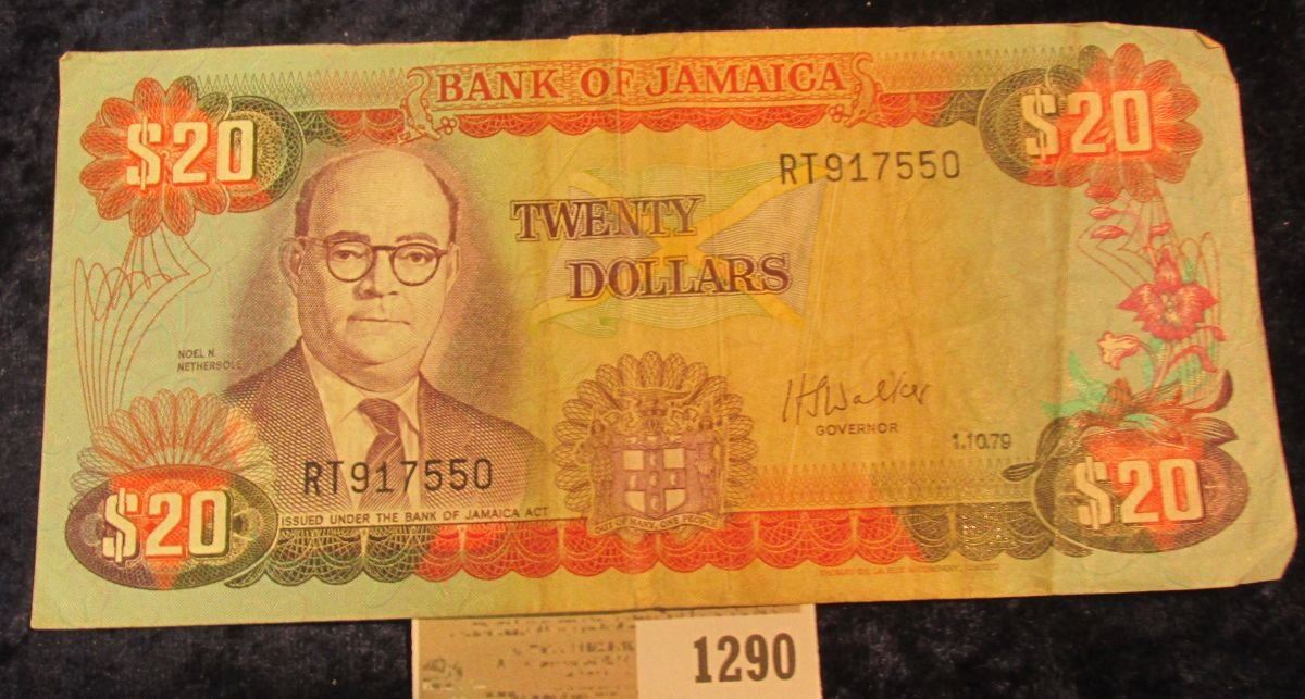 1290 _ 1.10.79 $20 Bank of Jamaica Bank note, VF.