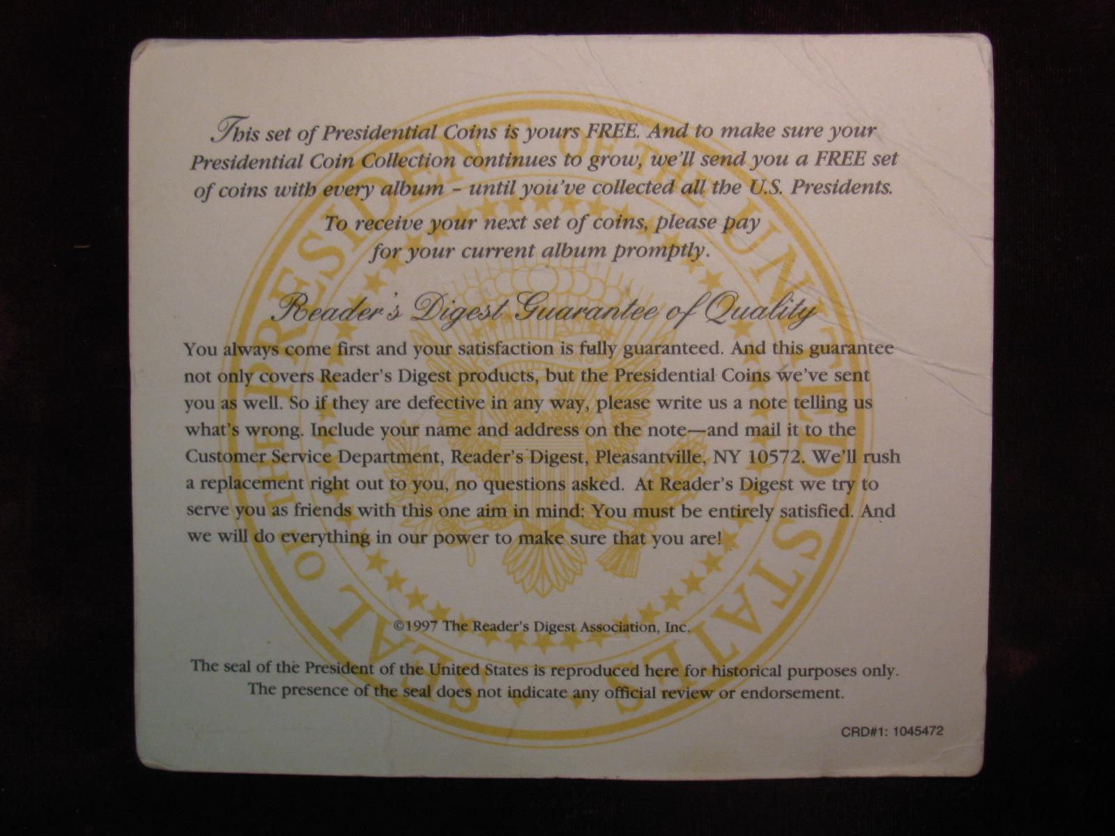 1290. Reader's Digest Presidential Brass 7 Coin Set.