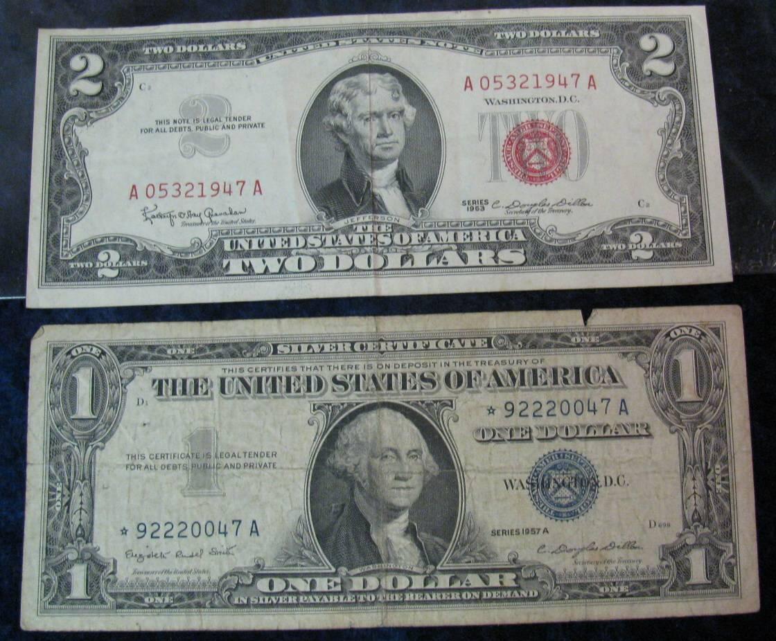1290. Series 1957A Star 1-Dollar & 1963 $2. US Note.VG, EF.