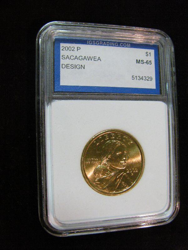 1294. 2002P Sacagawea Dollar Slabed IGS MS65.