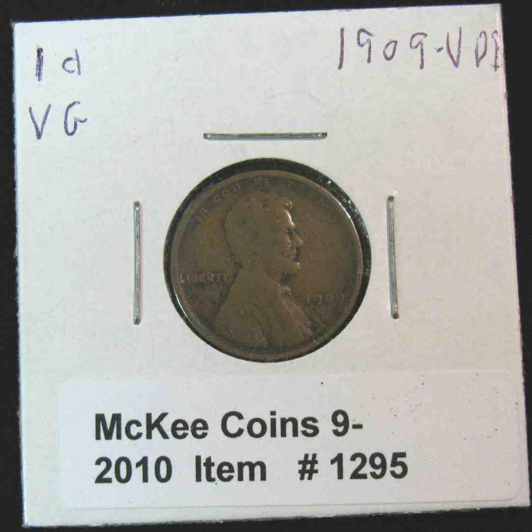 1295. 1909 P VDB Lincoln Cent. VG-8.