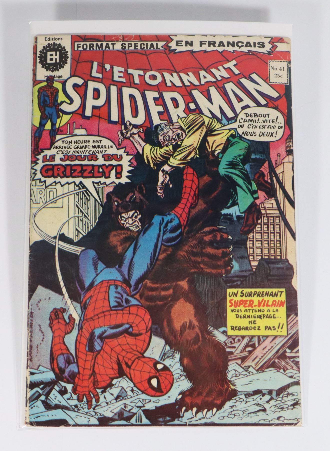 L'ÉTONNANT SPIDER-MAN # LES ÉDITIONS HÉRITAGE QUEBEC 1974 TORN COVER WORN***ITEM(S) LOCATED IN LETHBRIDGE ALBERTA, FREE TRANSPORT TO OUR EDMONTON OFFICE AVAILABLE. WORLDWIDE SHIPPING IS AVAILABLE***