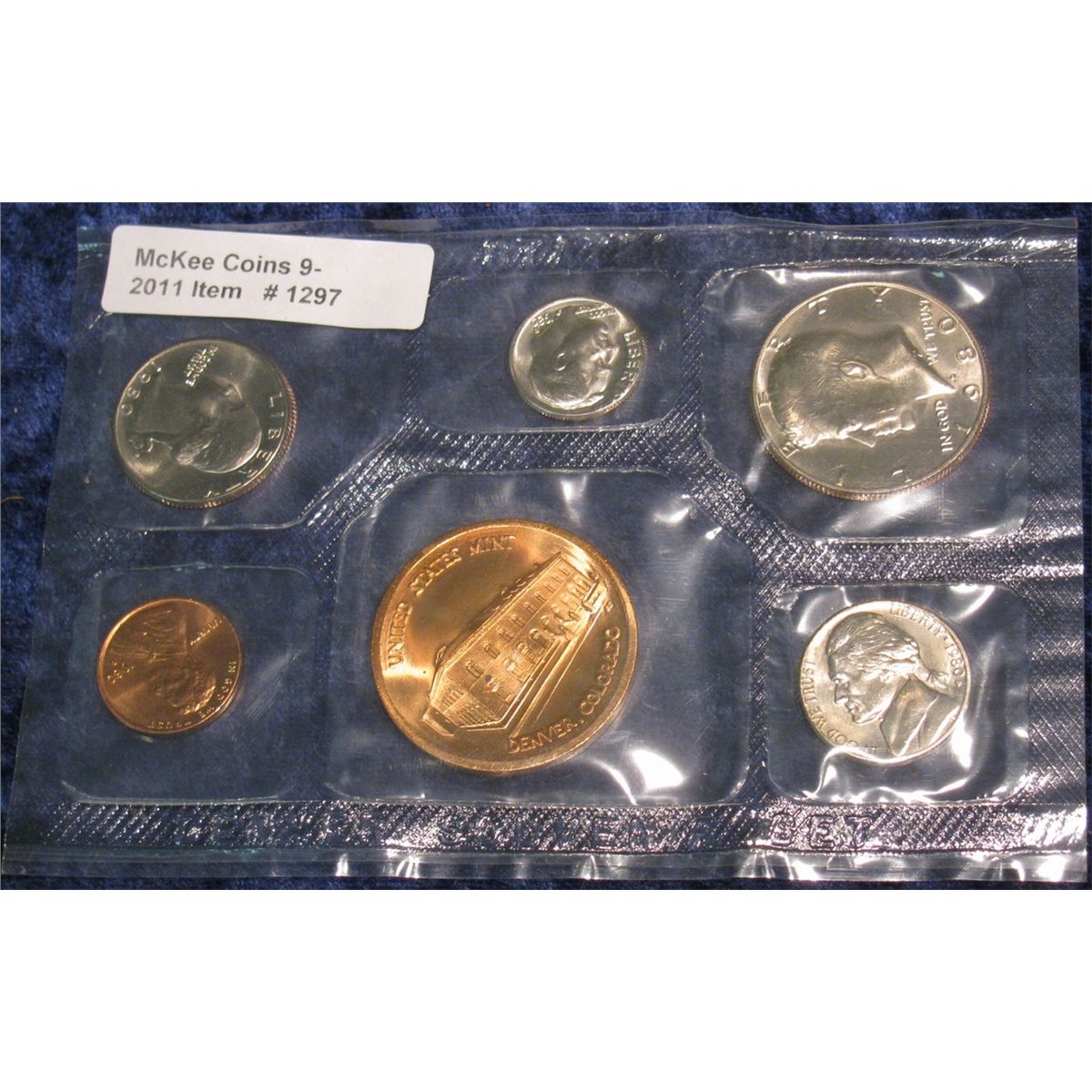 1297. 1980 Denver Mint U.S. Coin Souvenir Set. Cent to Half Dollar with Mint medal in original cellophane.