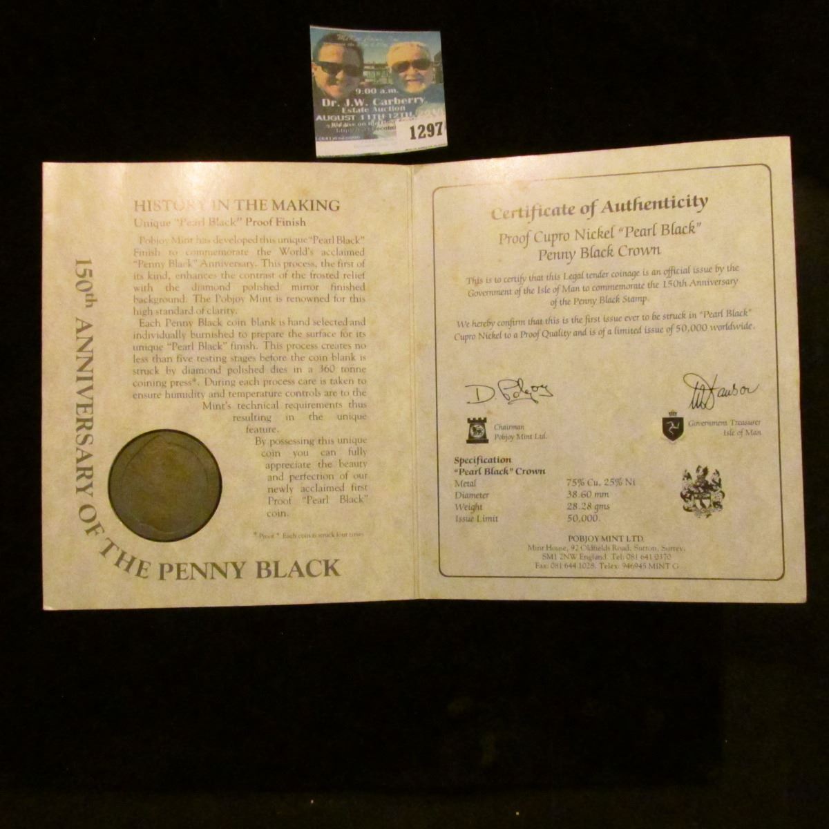 1990 Isle of Man, 1Crown Commemorating 150th Aniversary of Penny Black Stamp, As Issued by The Pobjoy Mint.