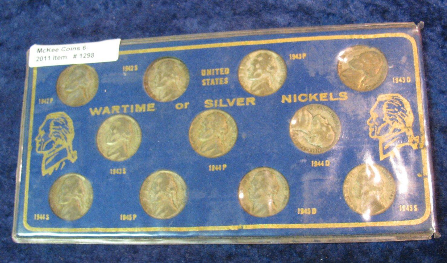 1298. 1942-45 Complete Set of Silver War Time Nickels.