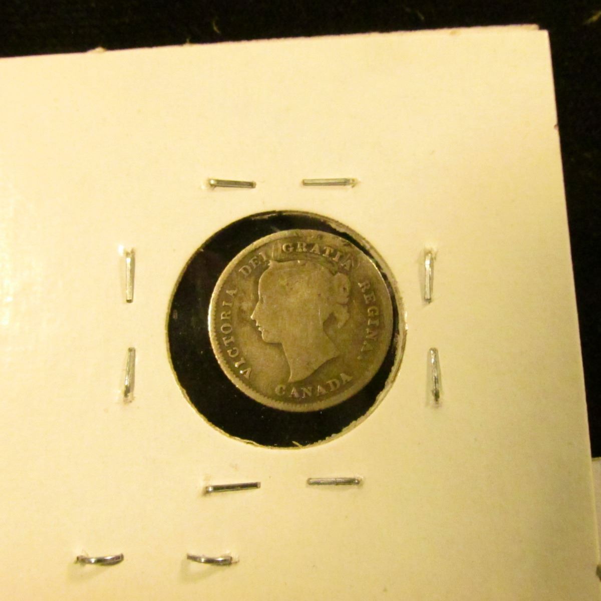 1874 crosslet 4 large date Canada Five Cent Silver, G, value $17