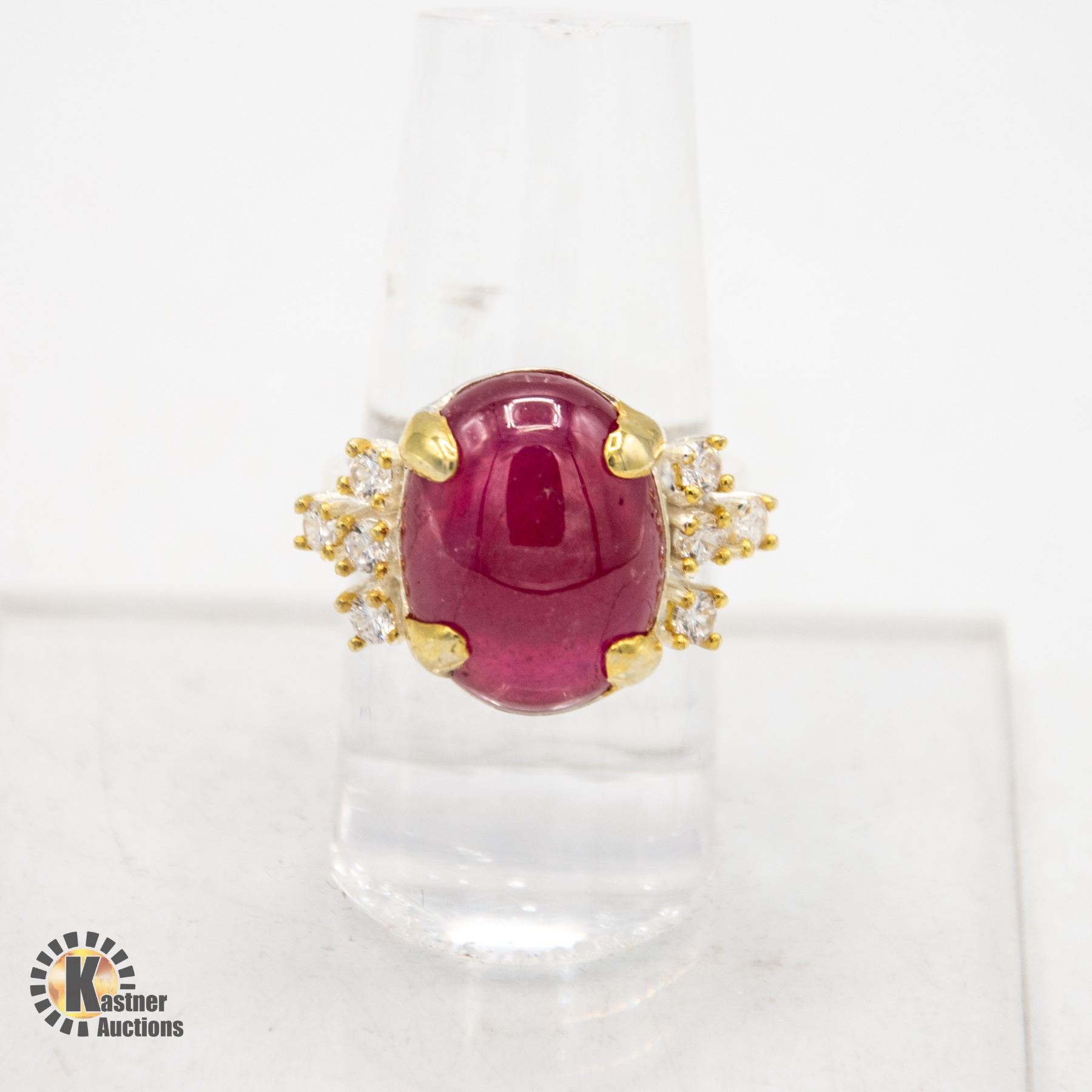 12CT RUBY GEMSTONE .925 SILVER RING, SIZE 8.75