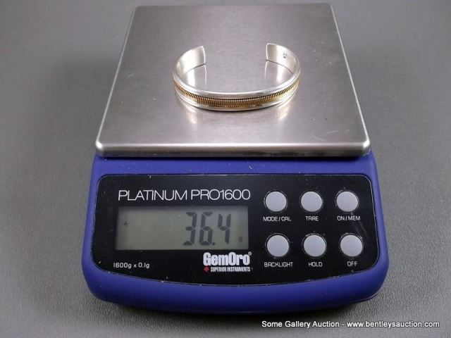 12K Yellow Gold Inset on Sterling Silver Bracelet- Marked Tahe Weight: 36.4 Grams Retail: $360.00