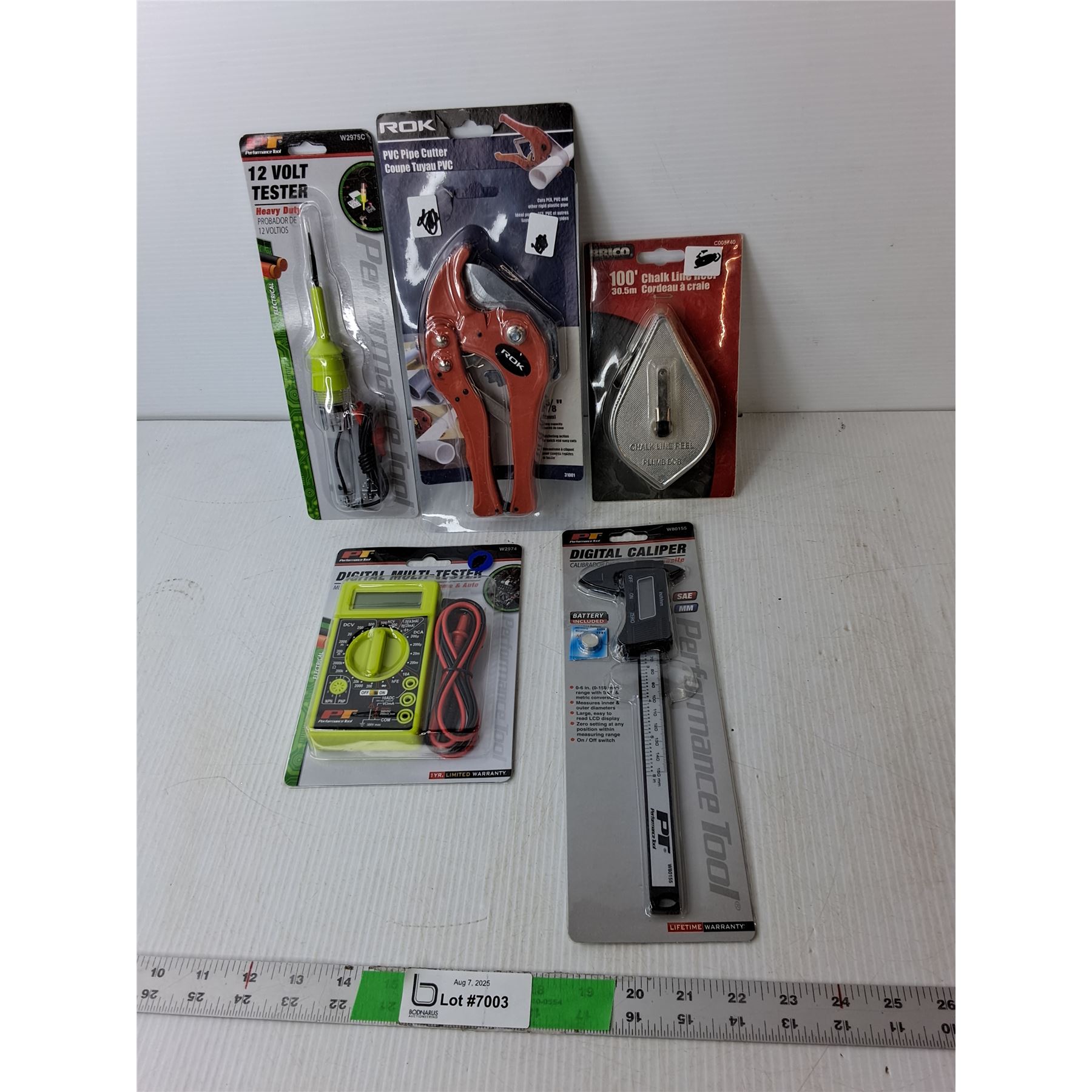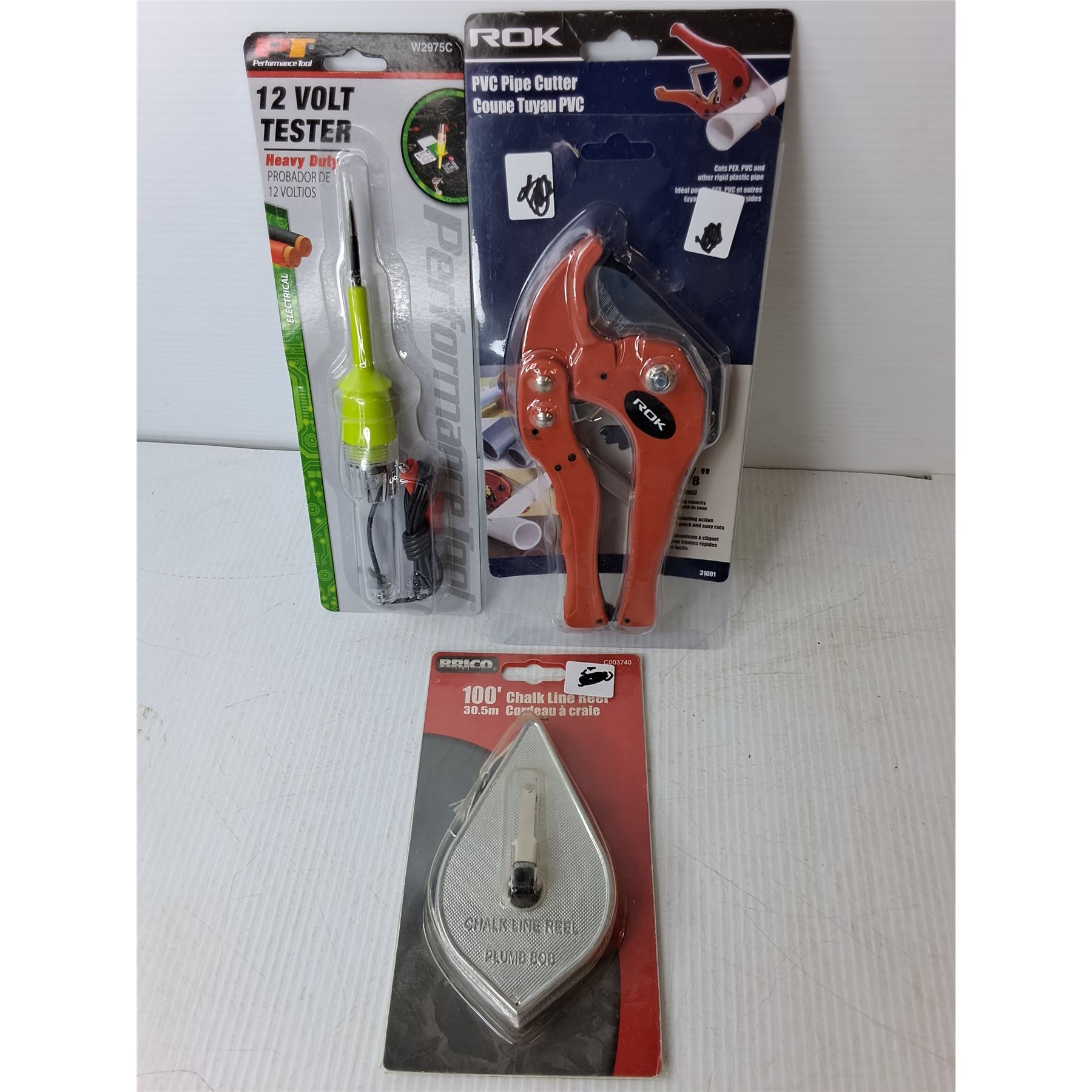 12V Tester, Pipe Cutter, Chalk Line Reel, Misc. All Sealed