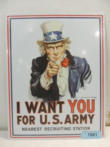 12X16 METAL PRINTED SIGN: UNCLE SAM, I WANT YOU FOR U.S. ARMY. AS SHOWN. VIEW PICTURE FOR DETAIL.