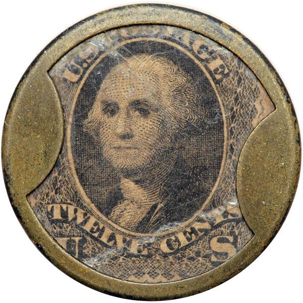 12¢ Encased Postage. Lord & Taylor. . Sc-EP125. This Lord & Taylor 12¢ encased postage issue is quite scarce. The untampered case grades Extremely Fine. The 12¢ black Wasshington stamp appears intact and the mica shows normal crazing.